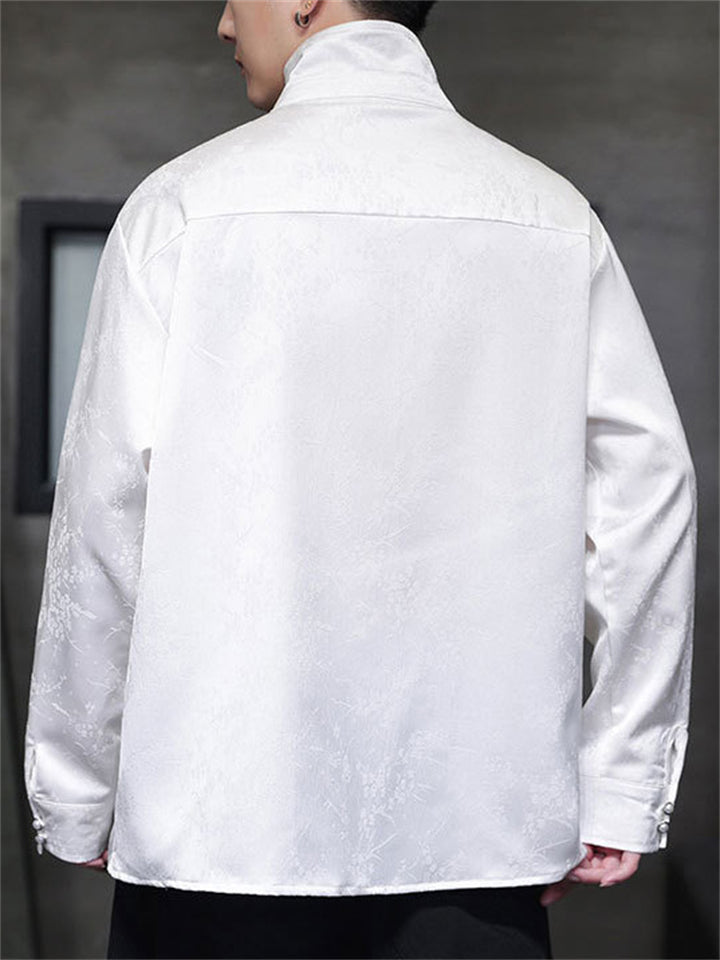 Men's Autumn Vintage Jacquard Stand Collar Long Sleeve Shirts