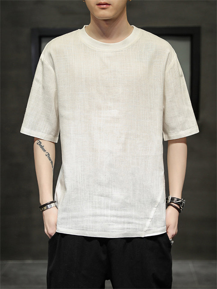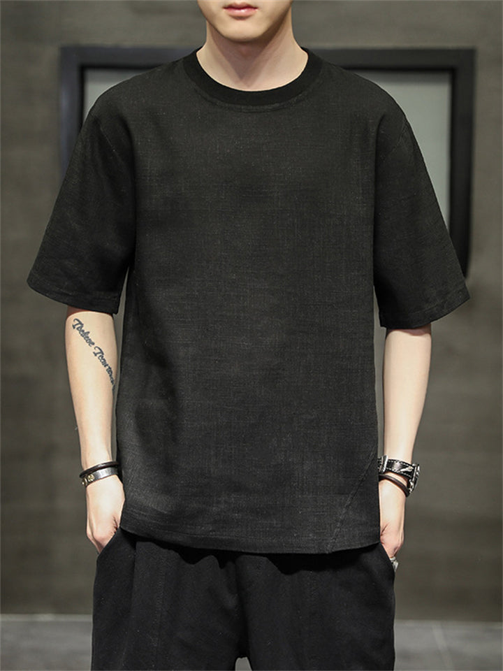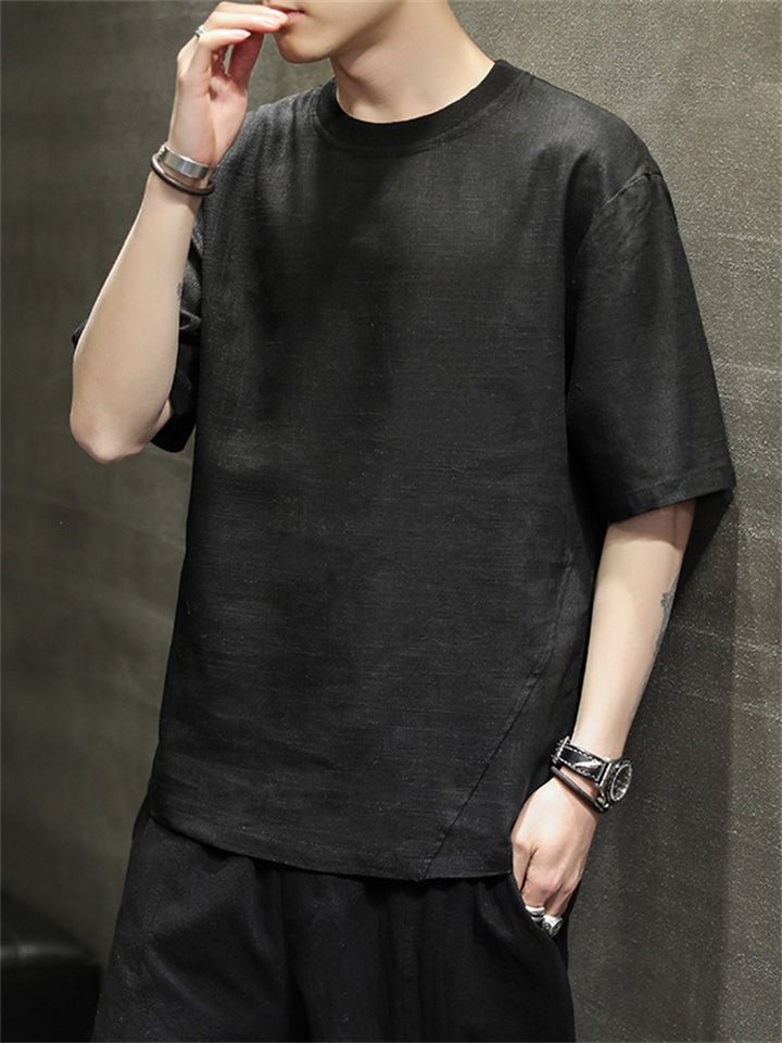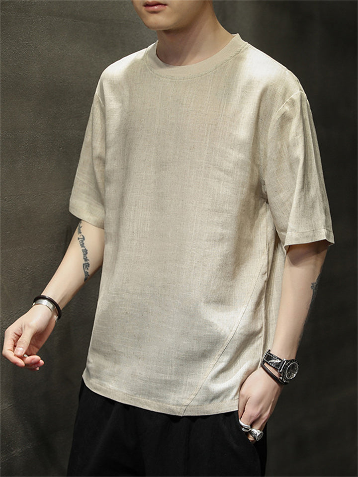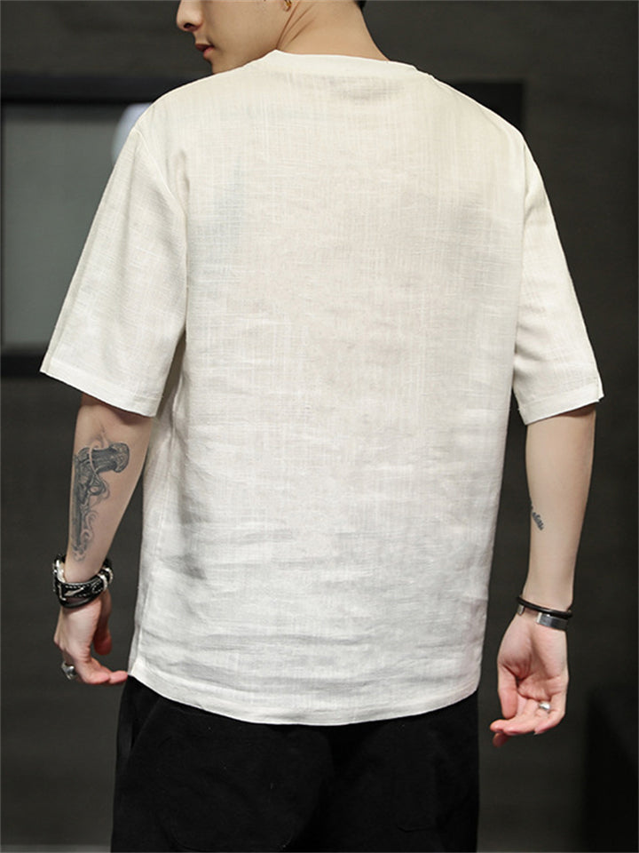 Men's Autumn Solid Color Zen Style Pullover Long Sleeve Shirts