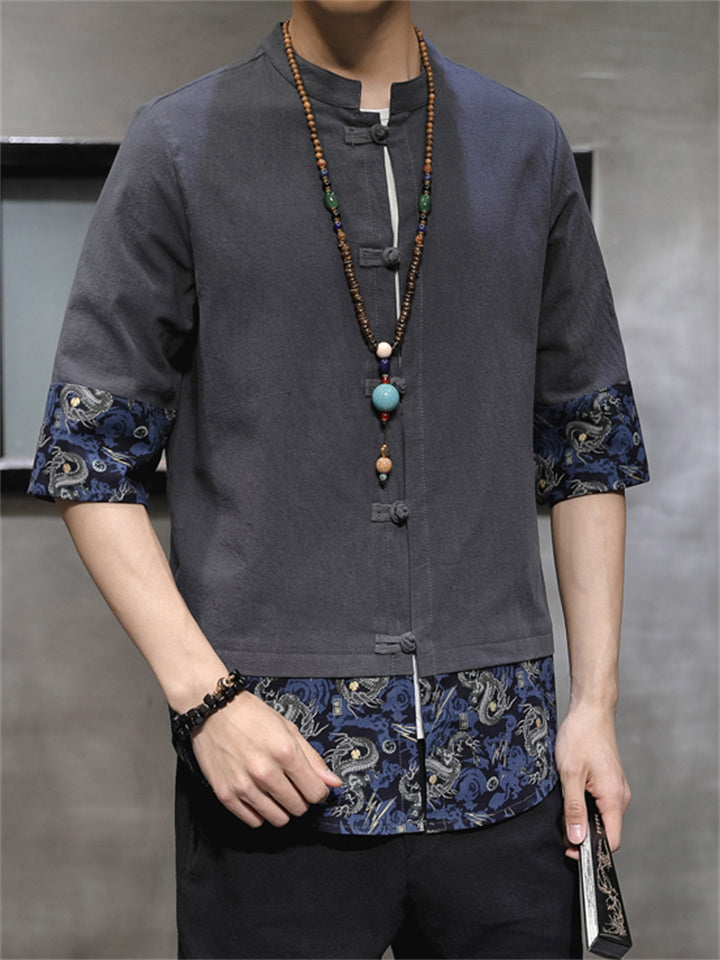 Men's Autumn Vintage Chinese Style Printed Frog Button Tangsuit Shirts