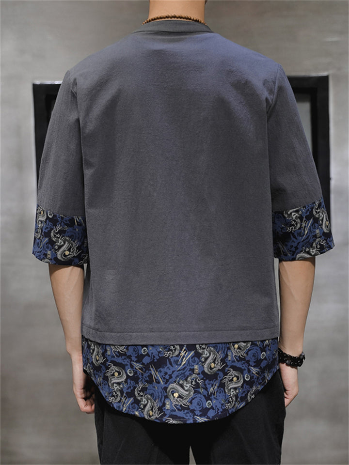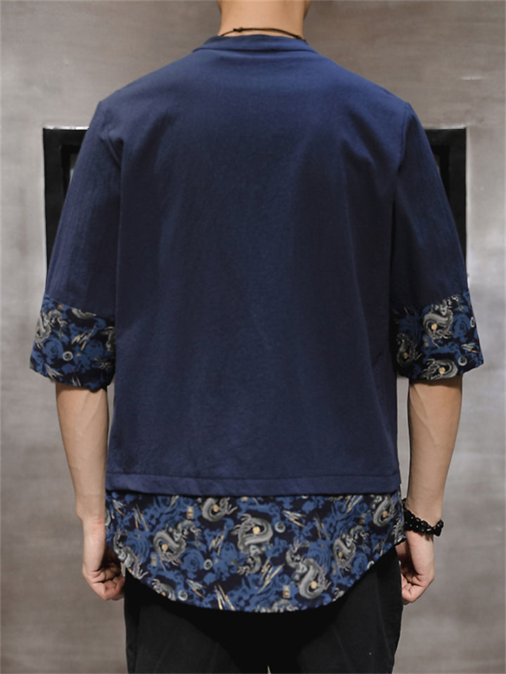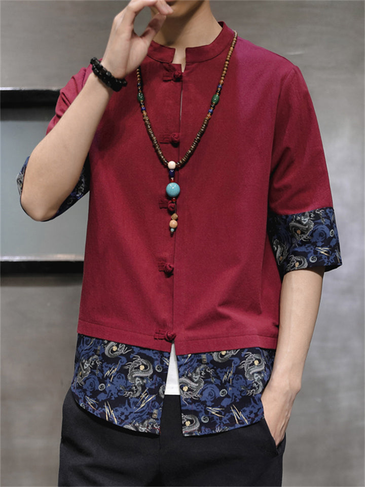 Men's Vintage Patchwork Ethnic Style Printed Half Sleeve Shirts