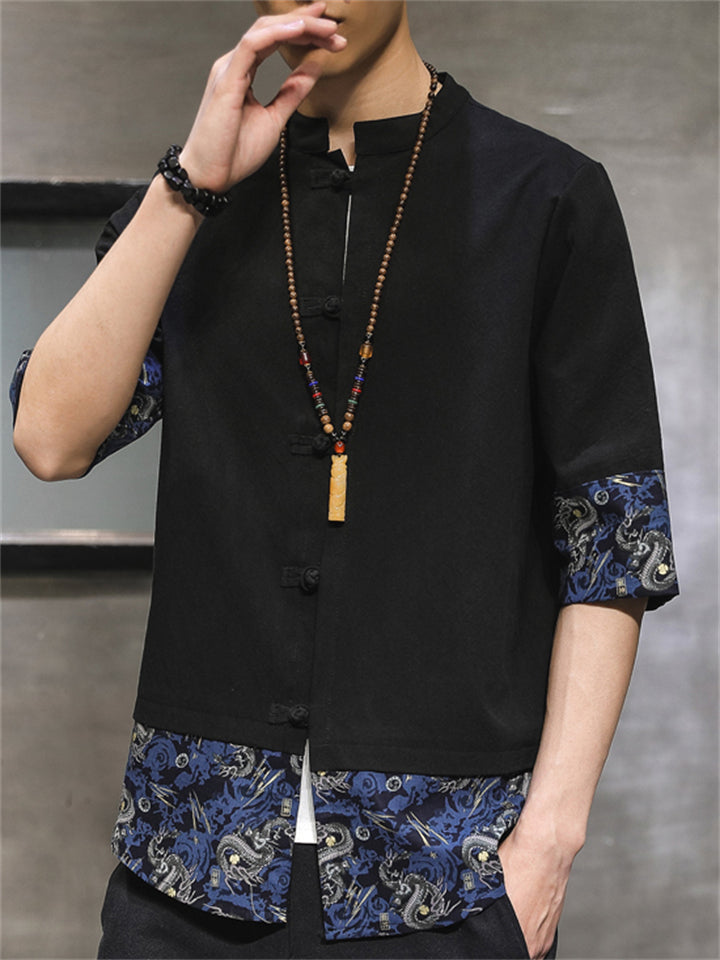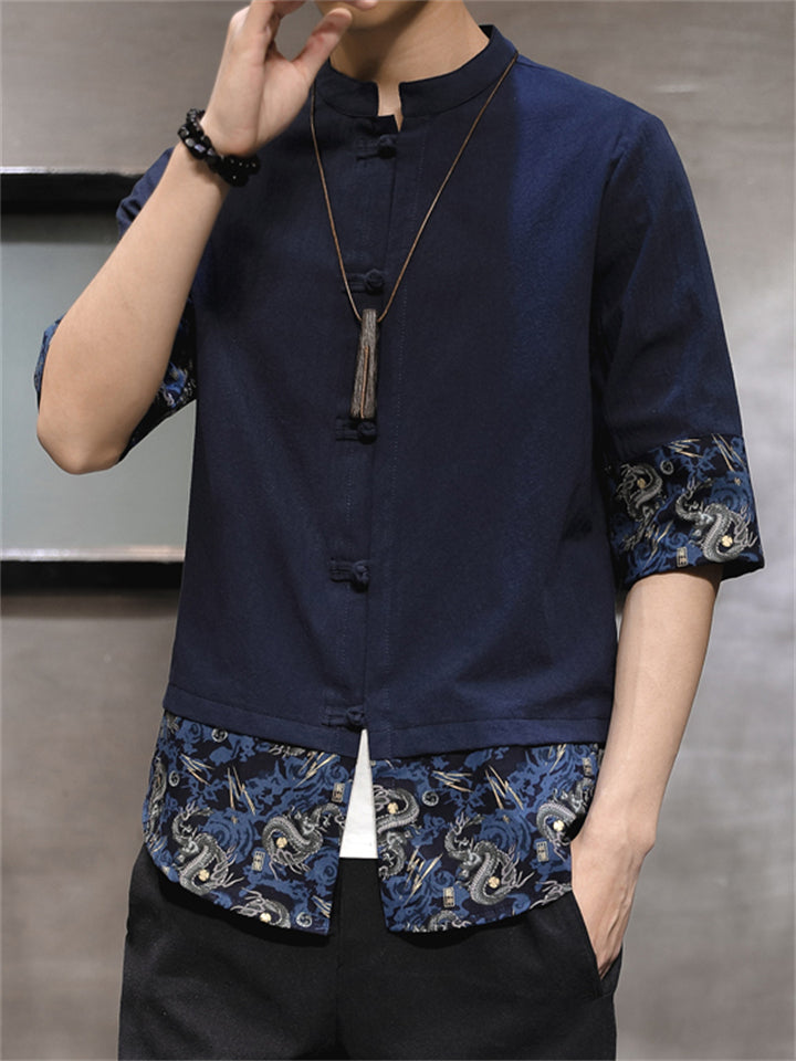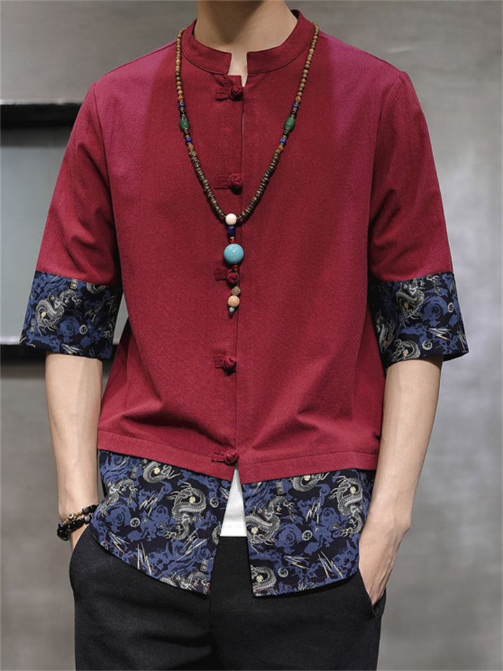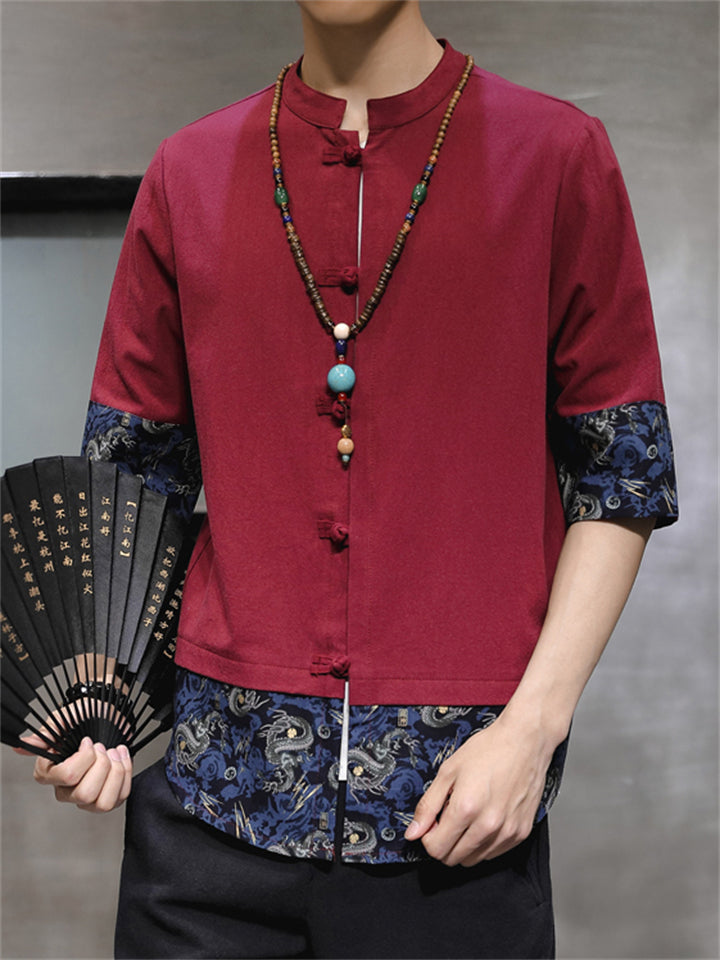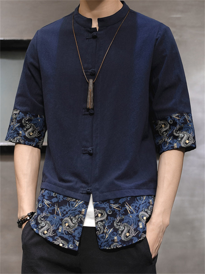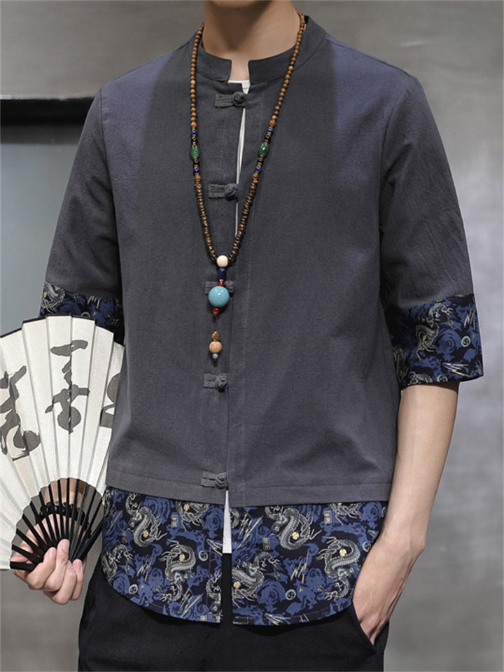 Men's Vintage Summer Solid Color 3/4 Sleeve Stand Collar Shirts