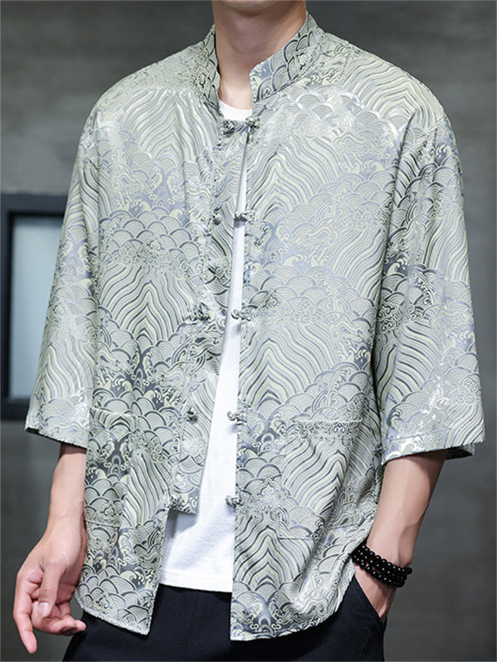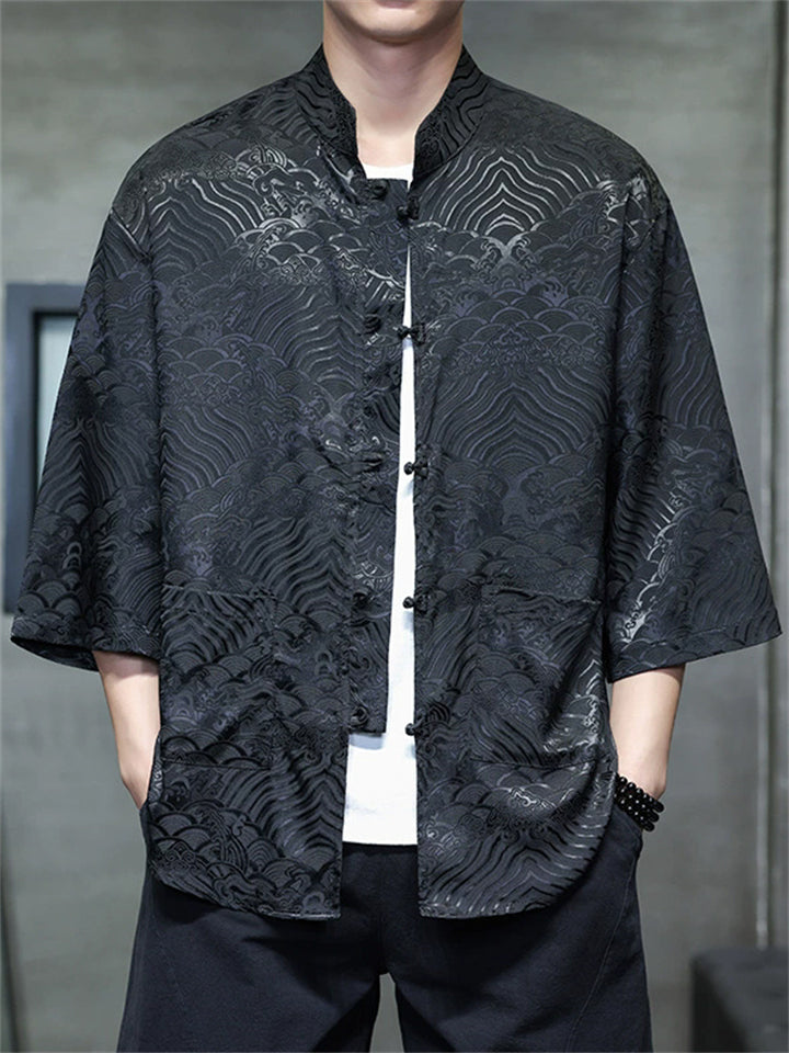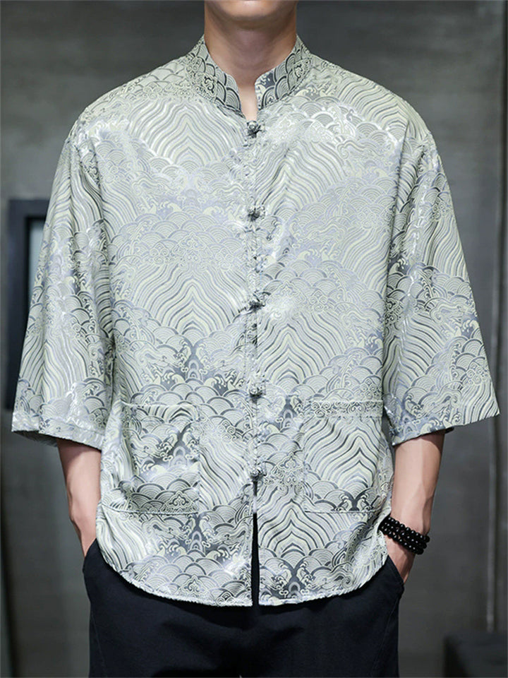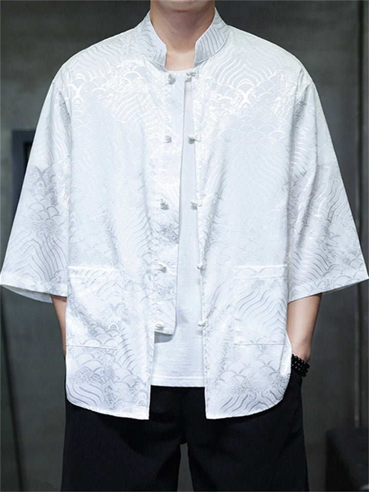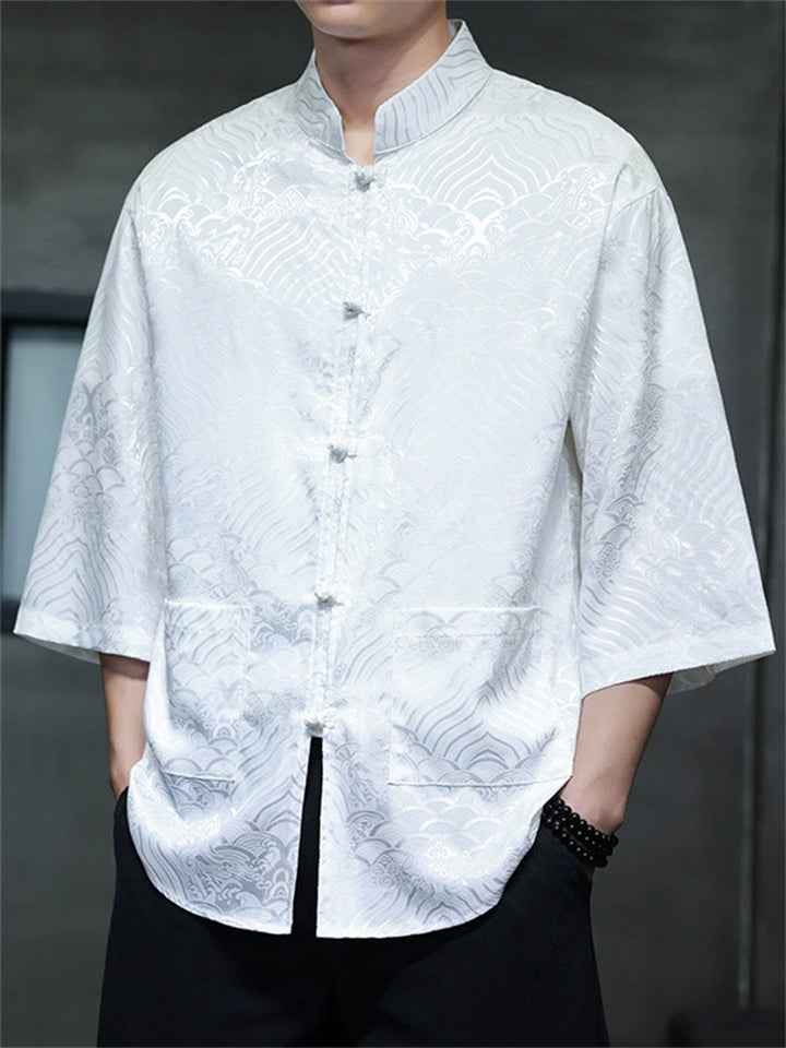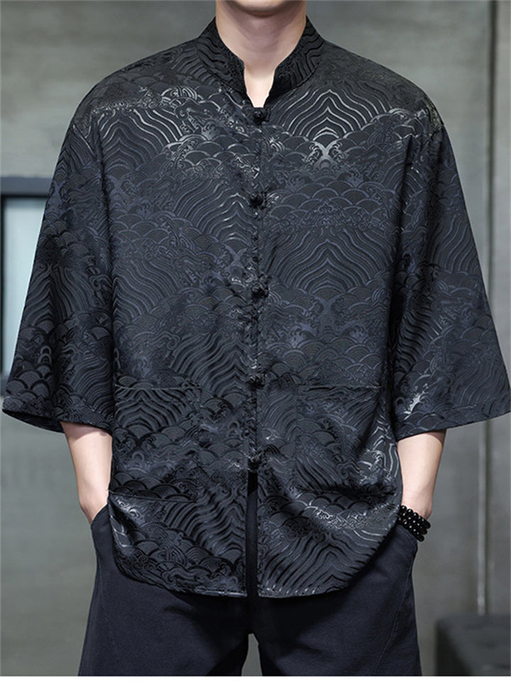 Men's Summer Casual Chinese Style Clouds Jacquard Half Sleeve TangSuit Shirt