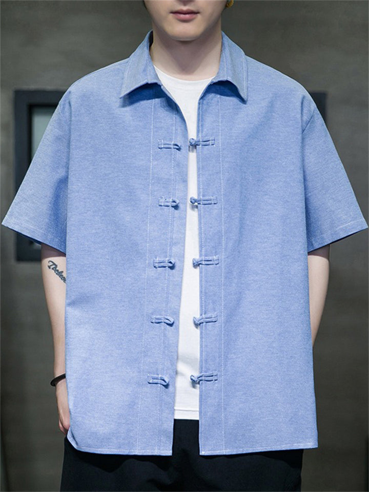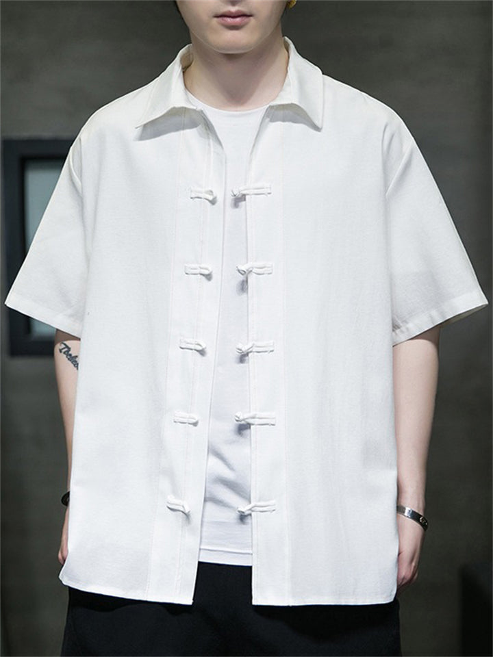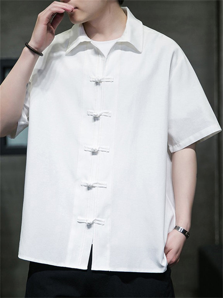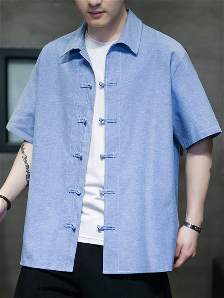 Men's Simple Chinese Style Ramine Stand Collar Tangsuit Shirts