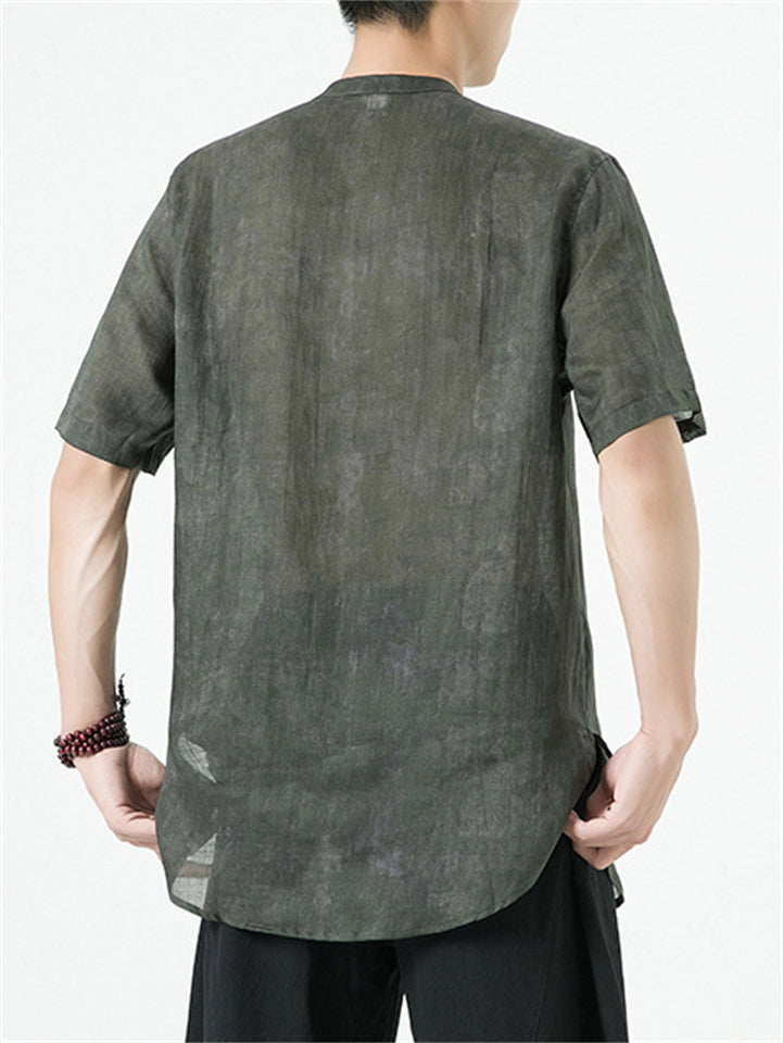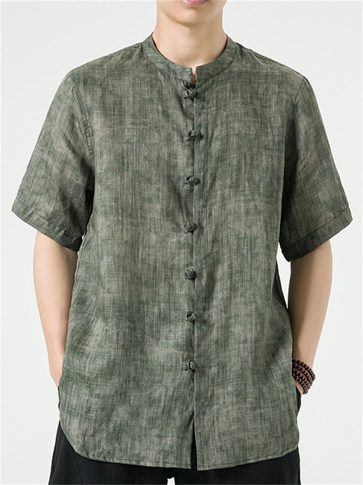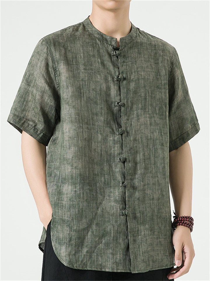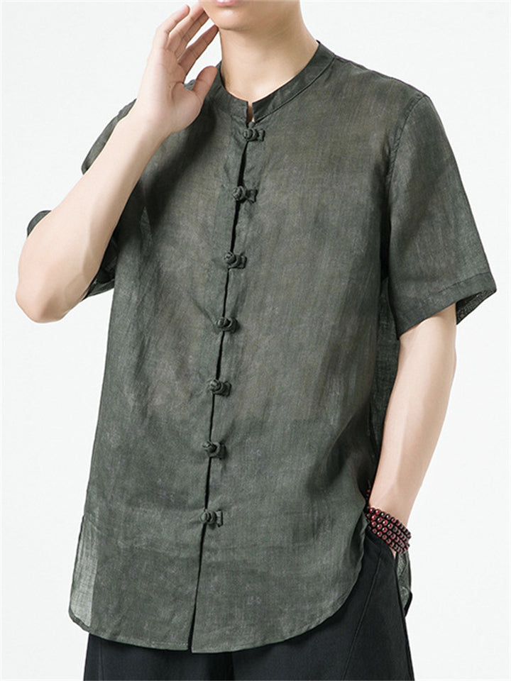 Men's Summer Casual Solid Color Ramie Frog Button Shirts
