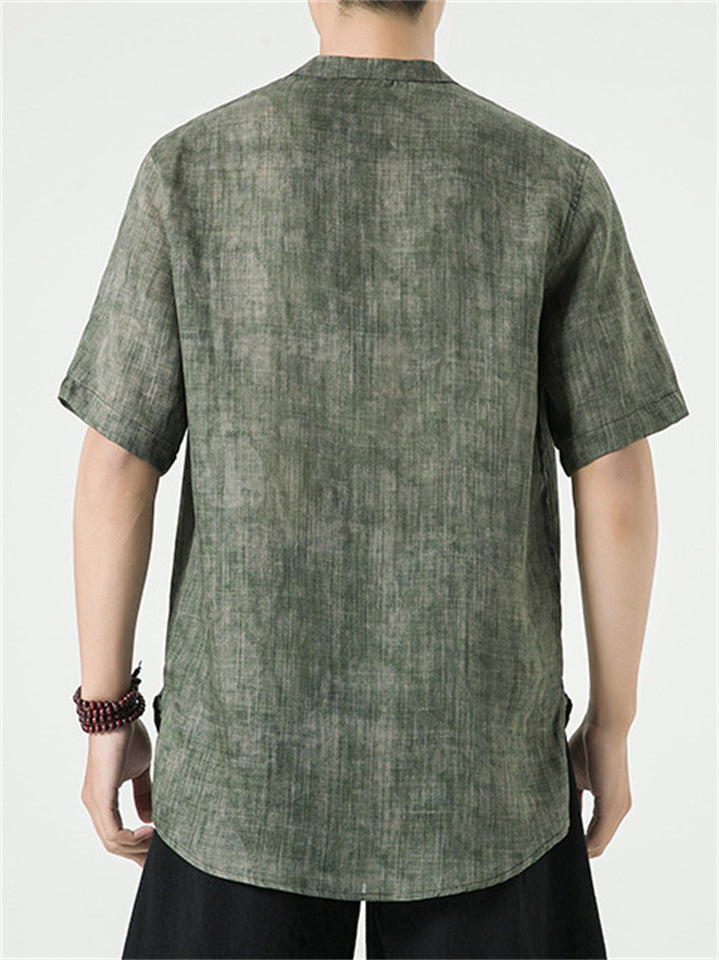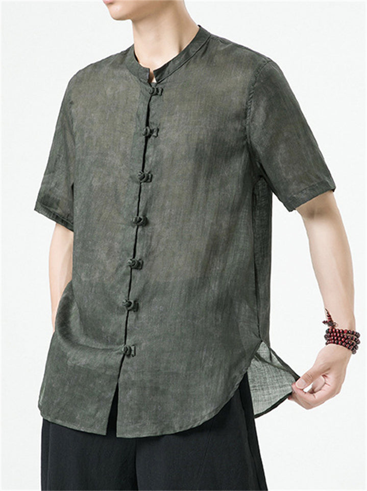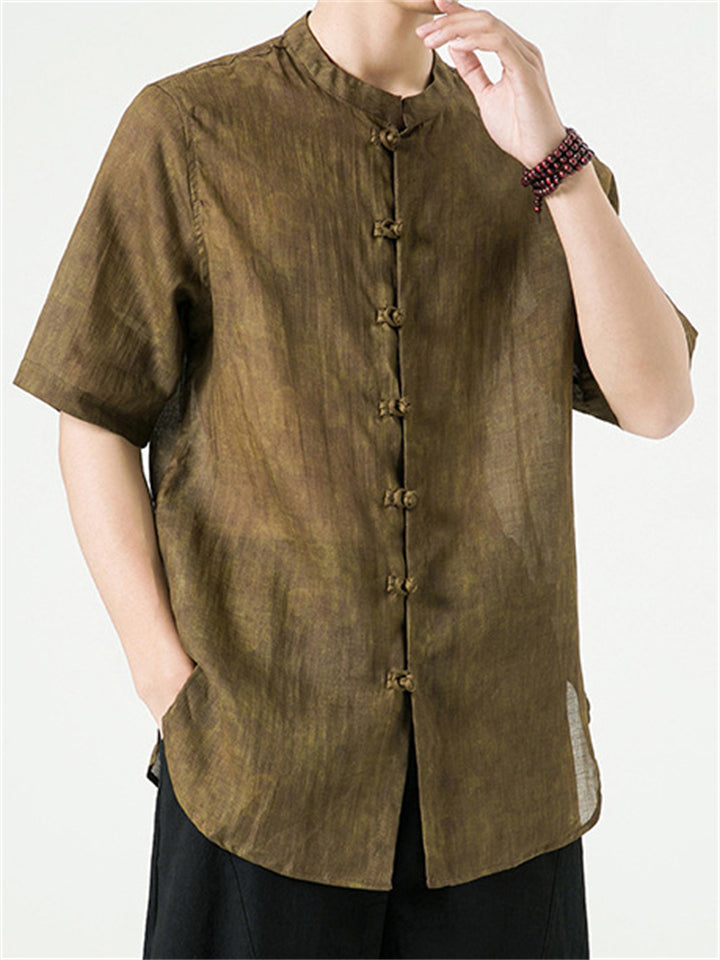 Men's Simple Chinese Style Ramine Stand Collar Tangsuit Shirts