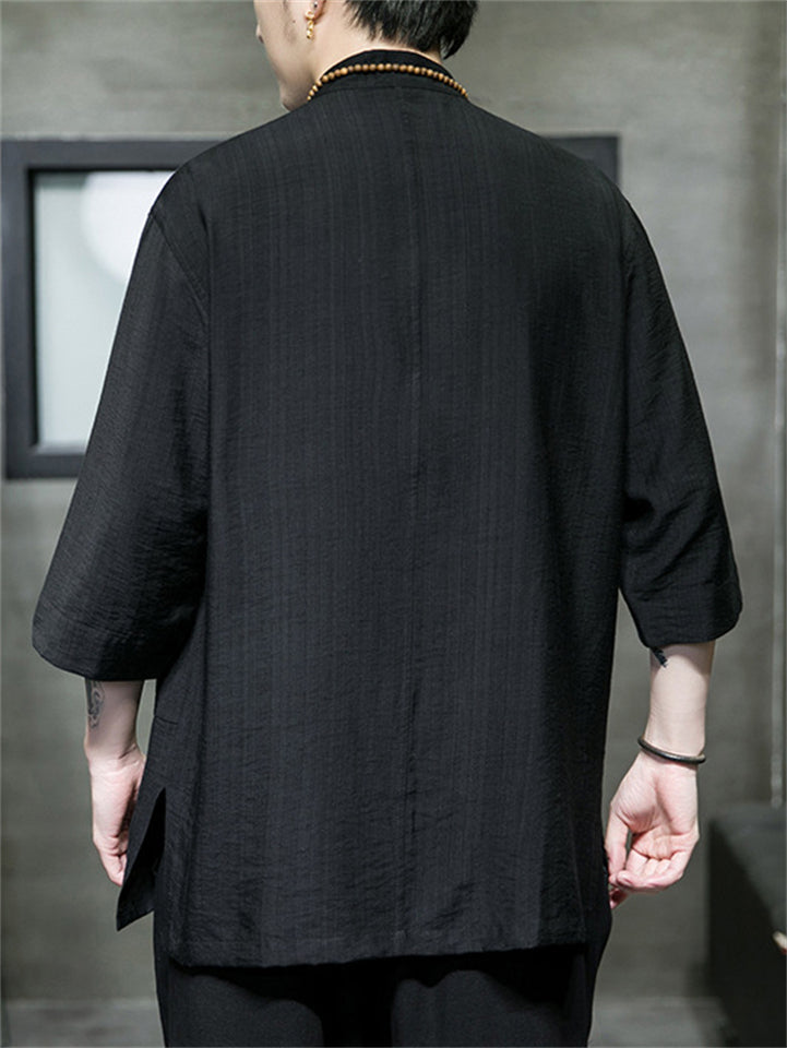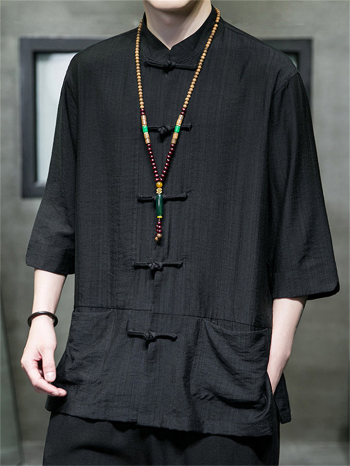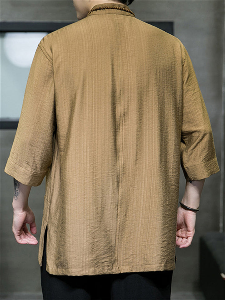 Men's Vintage Summer Solid Color 3/4 Sleeve Stand Collar Shirts