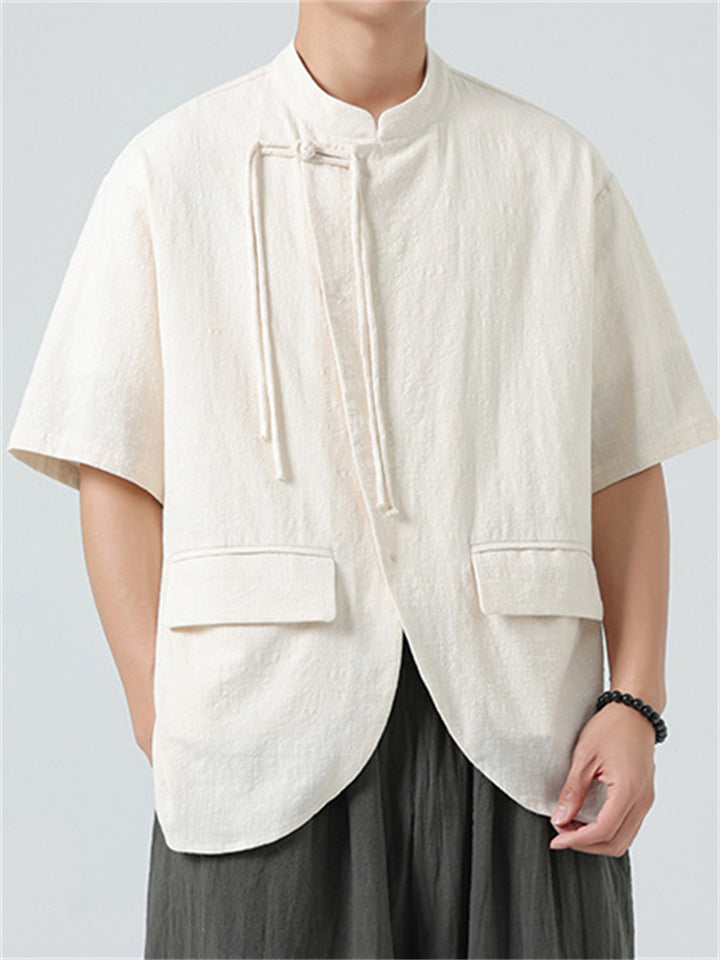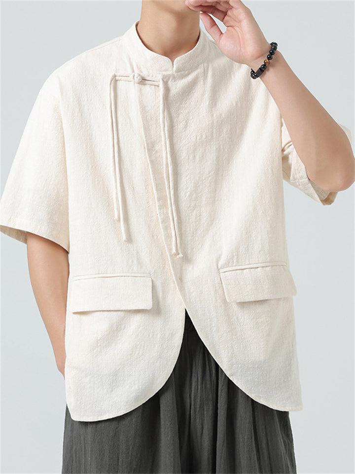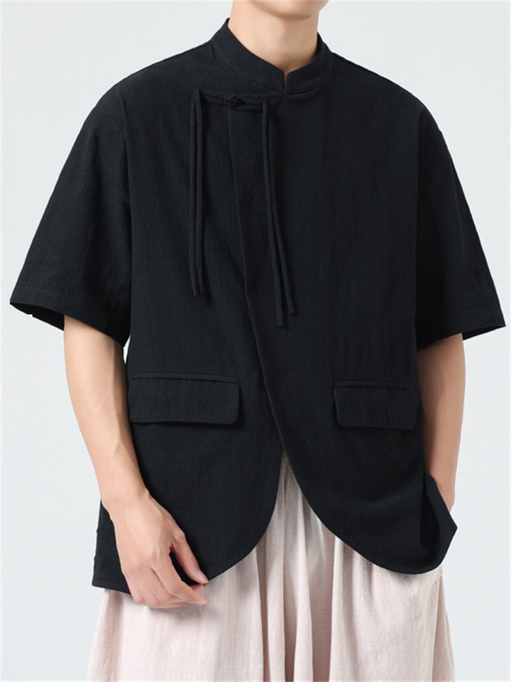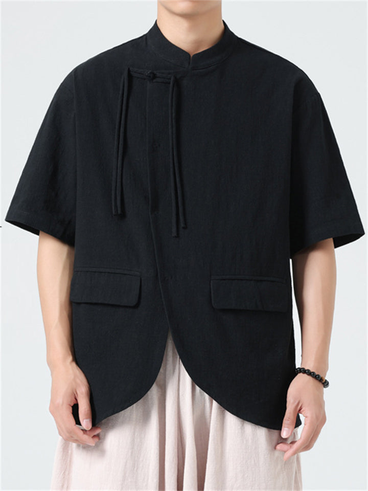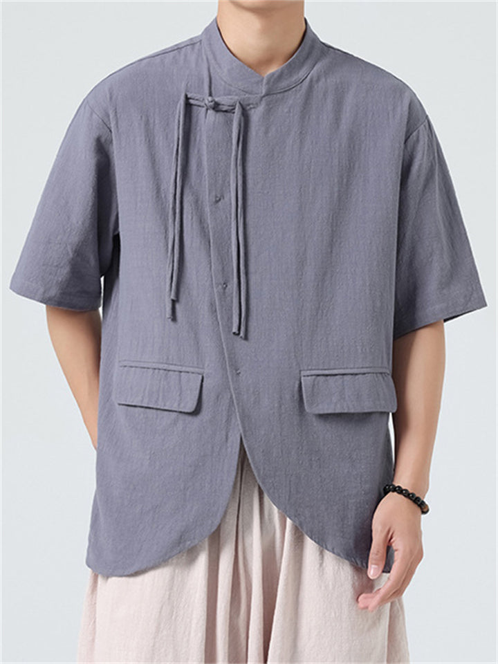 Men's Summer Chinese Style Fringe Button Stand Collar Shirt