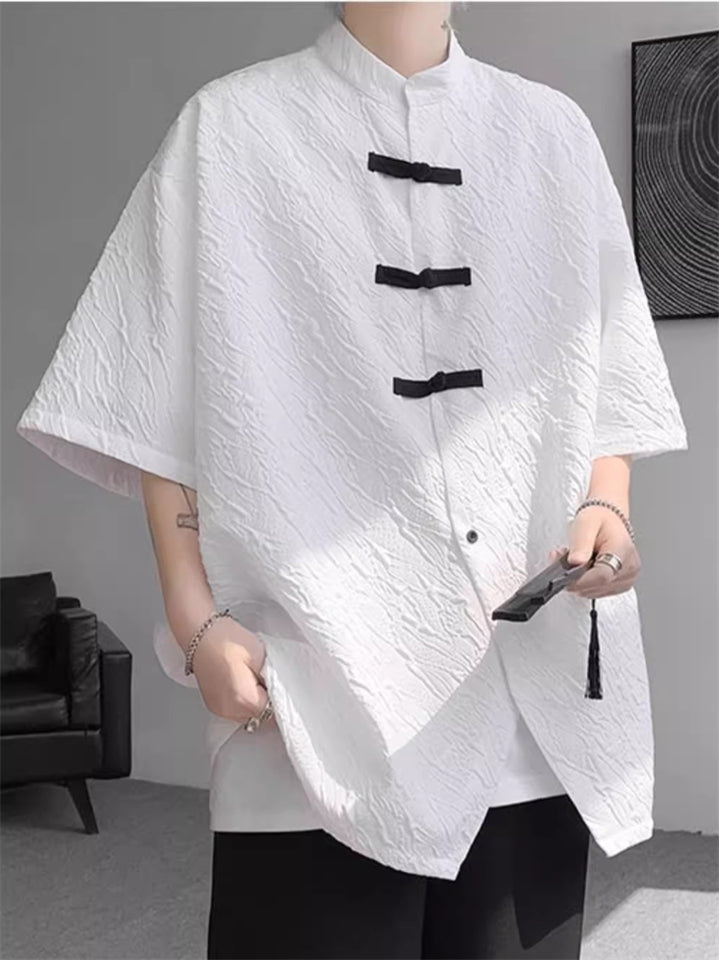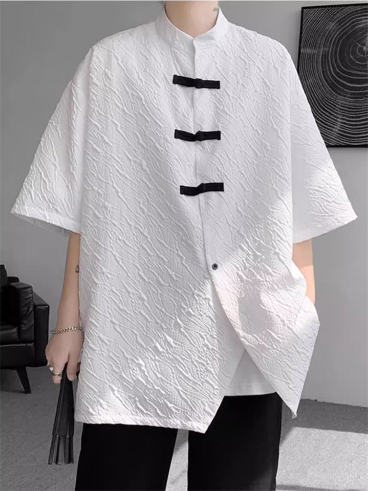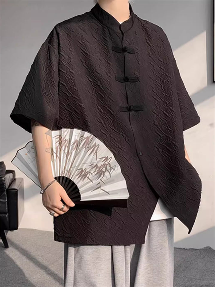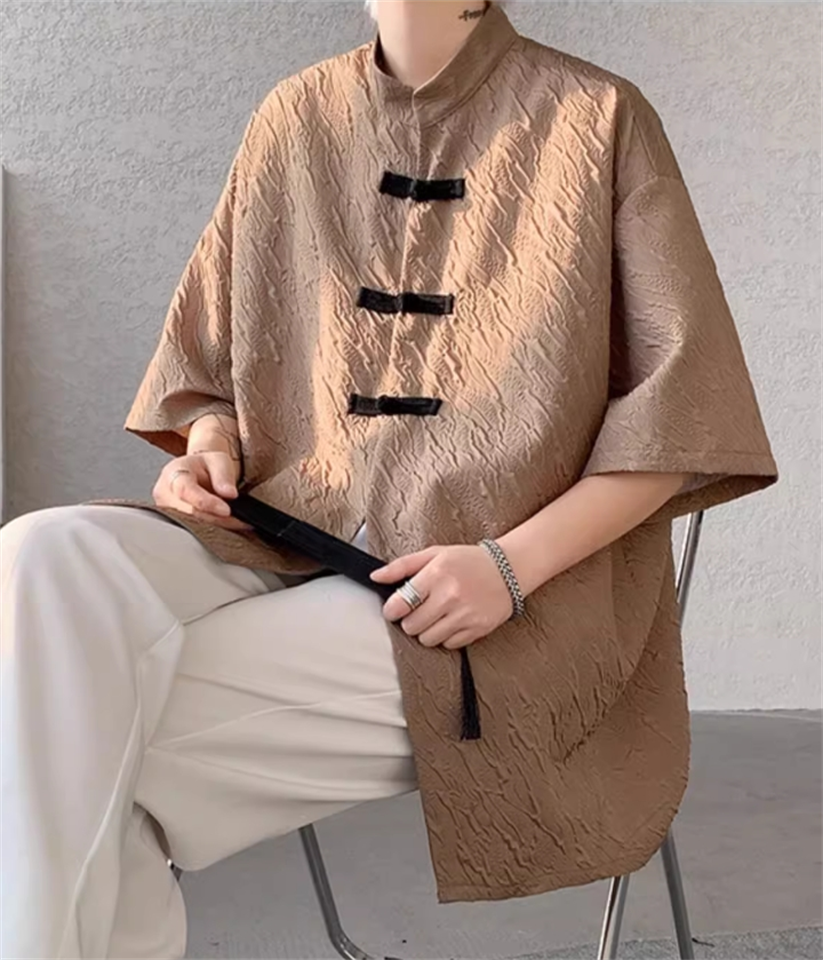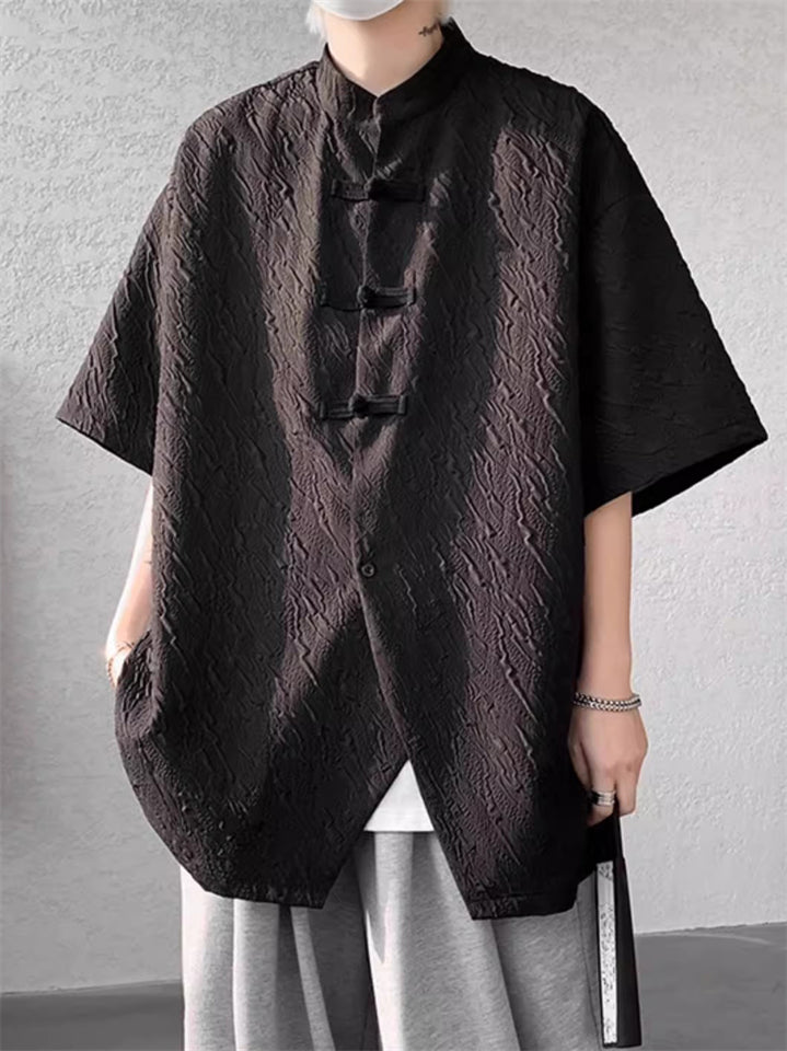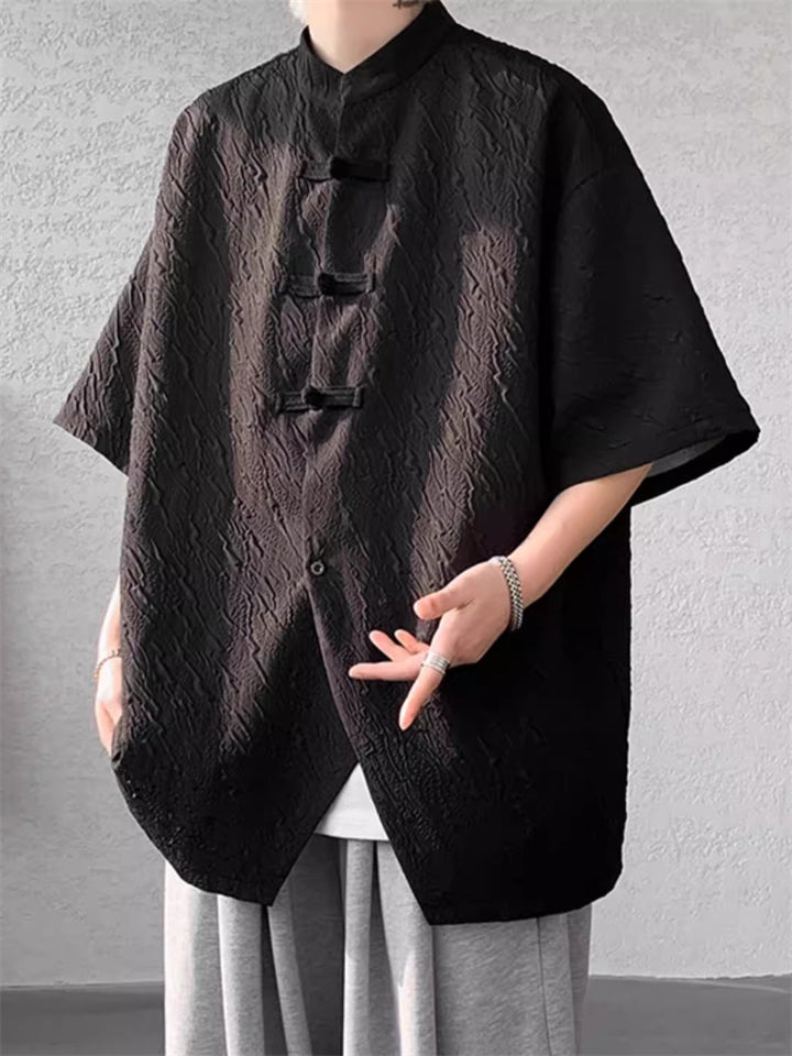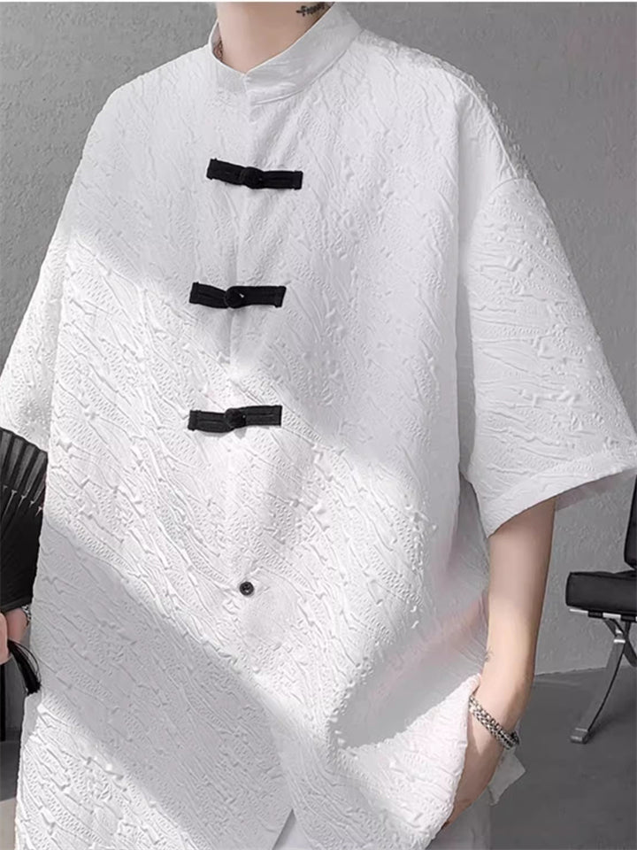 Men's Summer Chinese Style Frog Button Texture Tang Suit Shirts