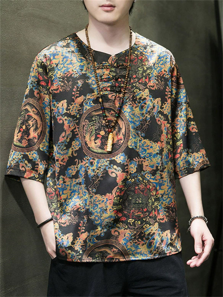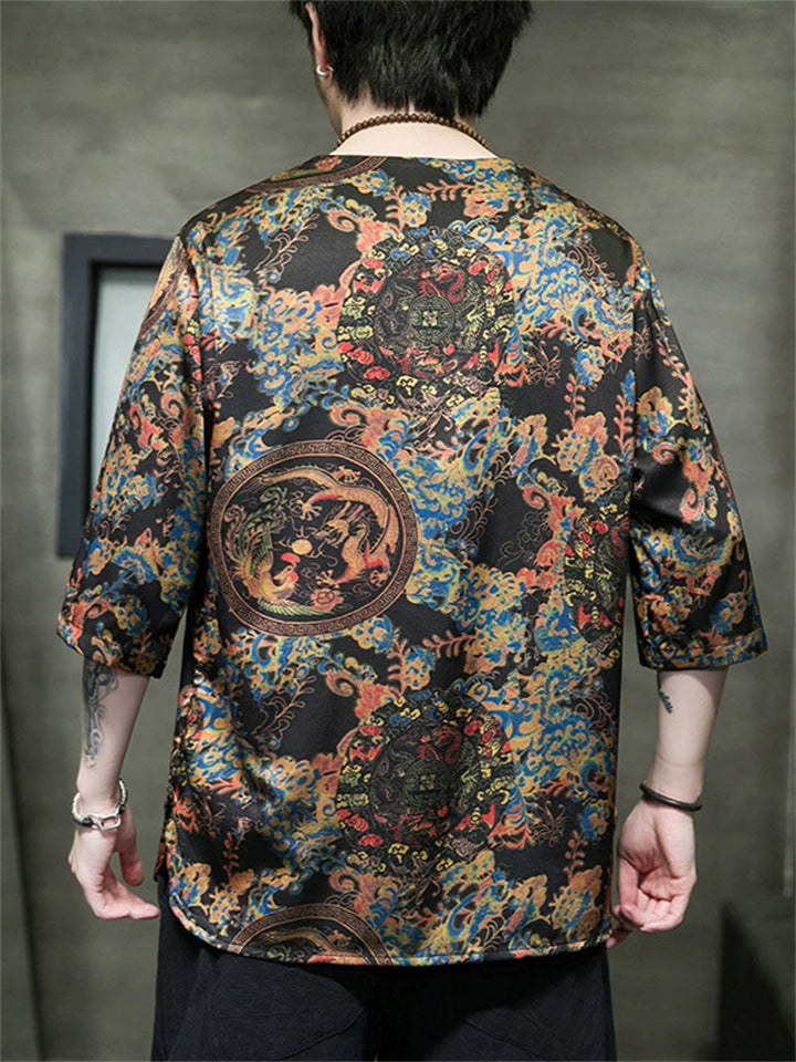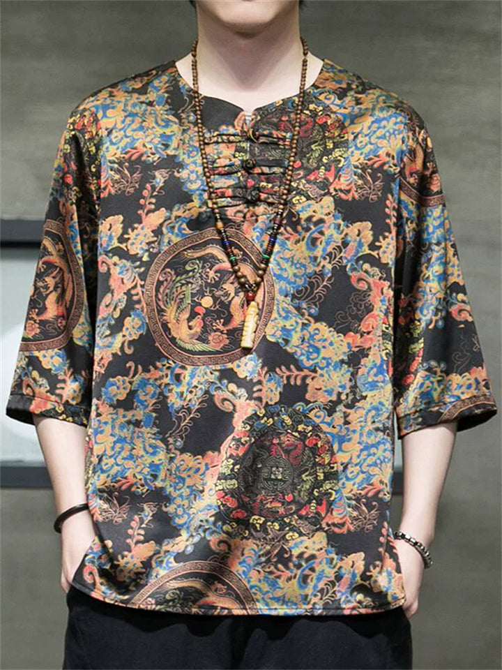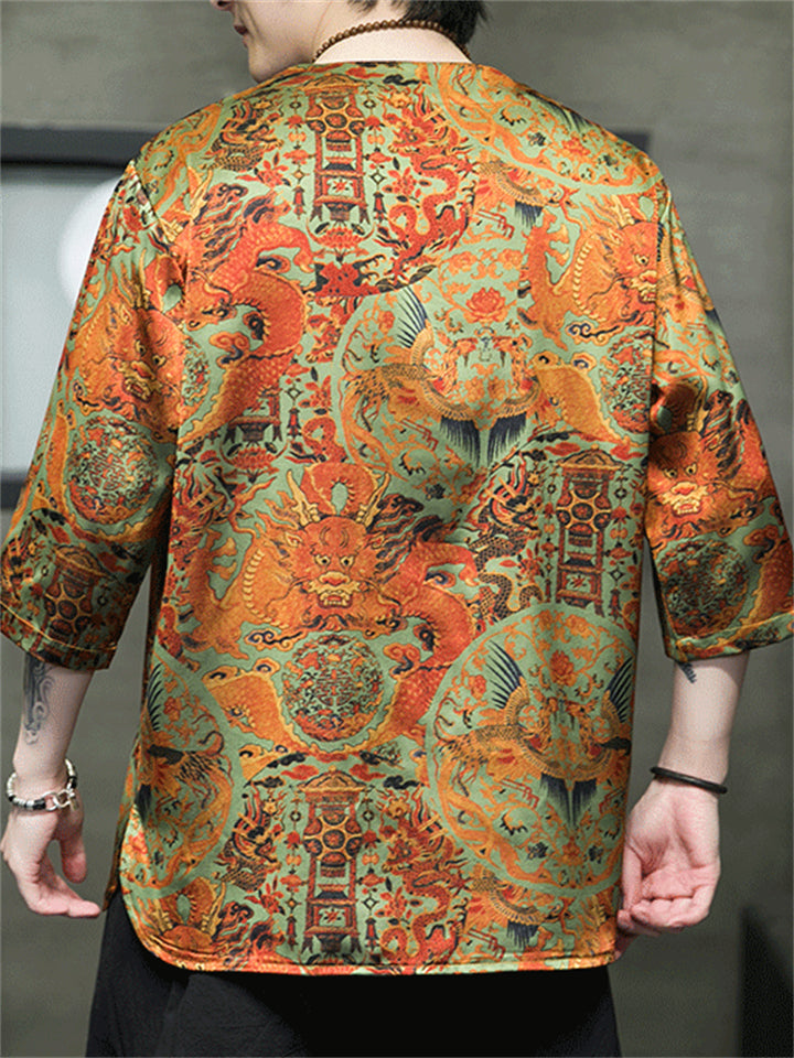 Men's Summer Cool Chinese Style Loong Printed Half Sleeve TangSuit Shirt