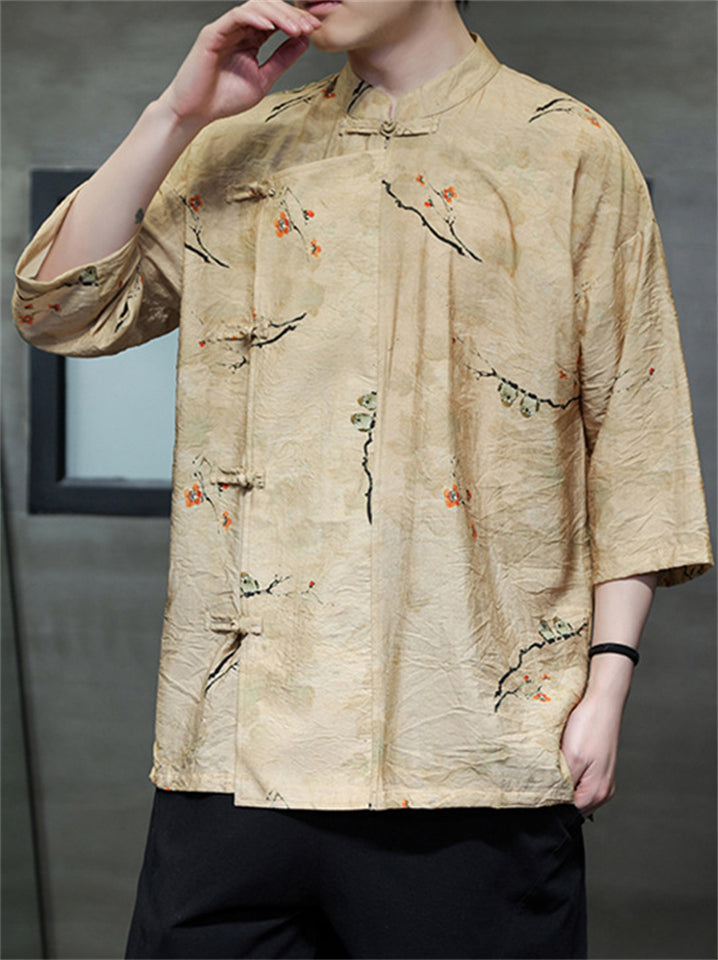 Men's Autumn Vintage Chinese Style Printed Frog Button Tangsuit Shirts