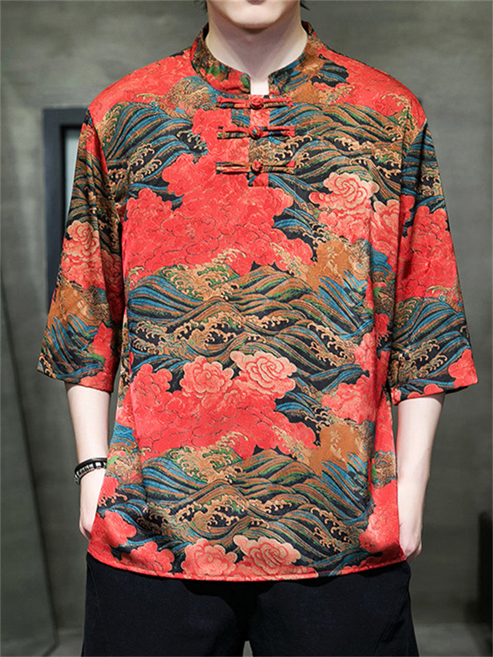 Men's Summer Cool Chinese Style Printed Half Sleeve TangSuit Shirt