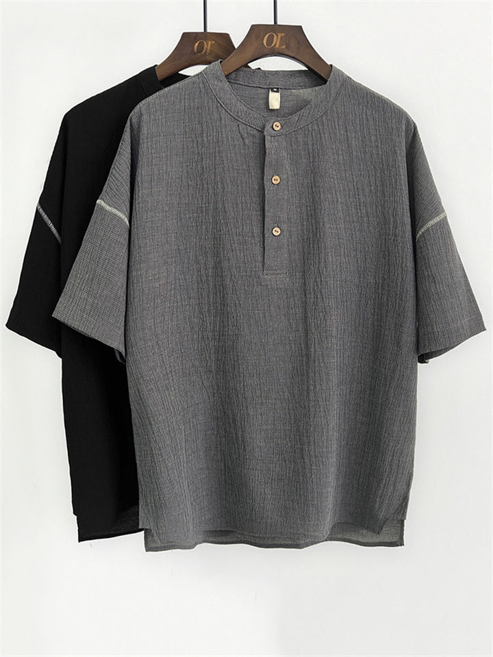 Men's Simple Solid Color Stand Collar Pullover Short Sleeve Shirts