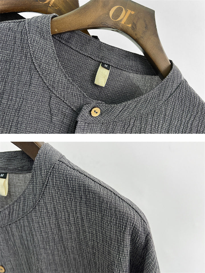 Men's Vintage Summer Solid Color 3/4 Sleeve Stand Collar Shirts