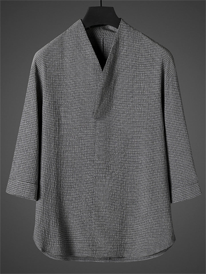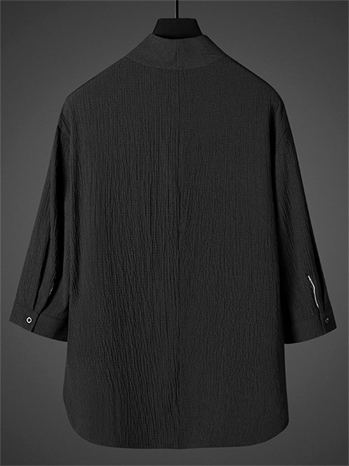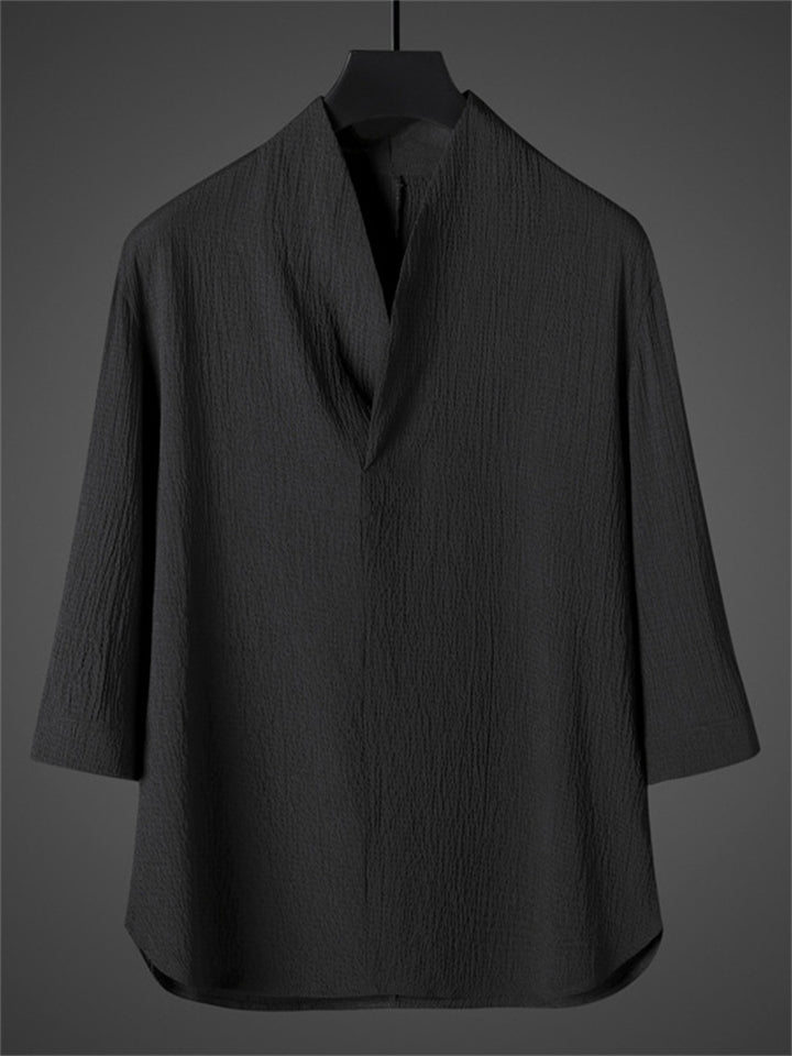 Men's Vintage Summer Solid Color 3/4 Sleeve Stand Collar Shirts