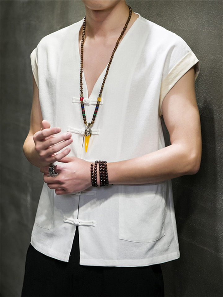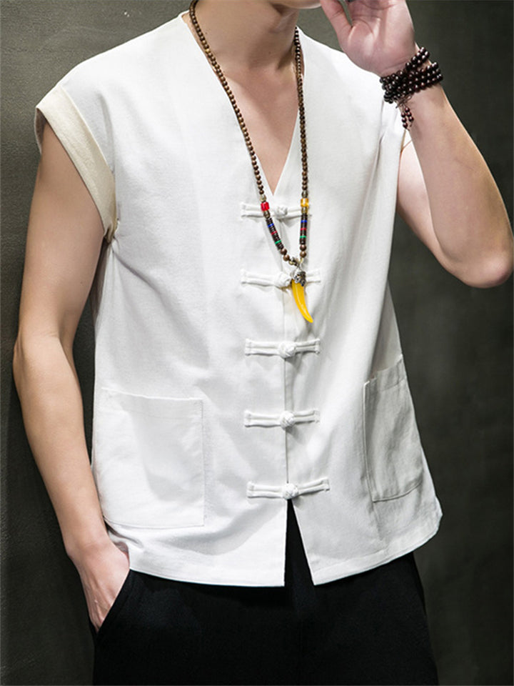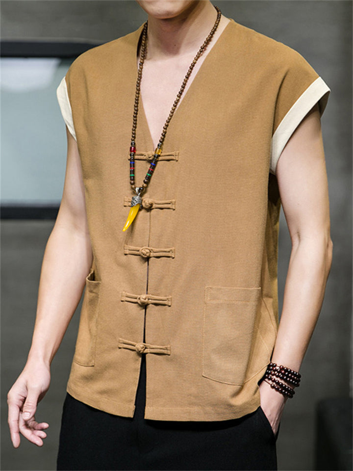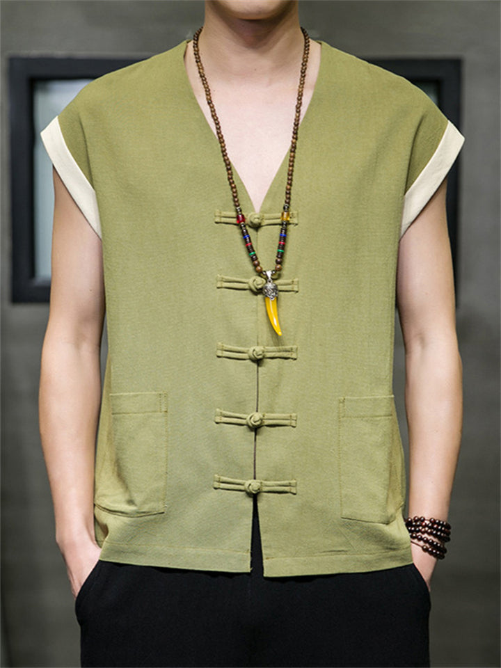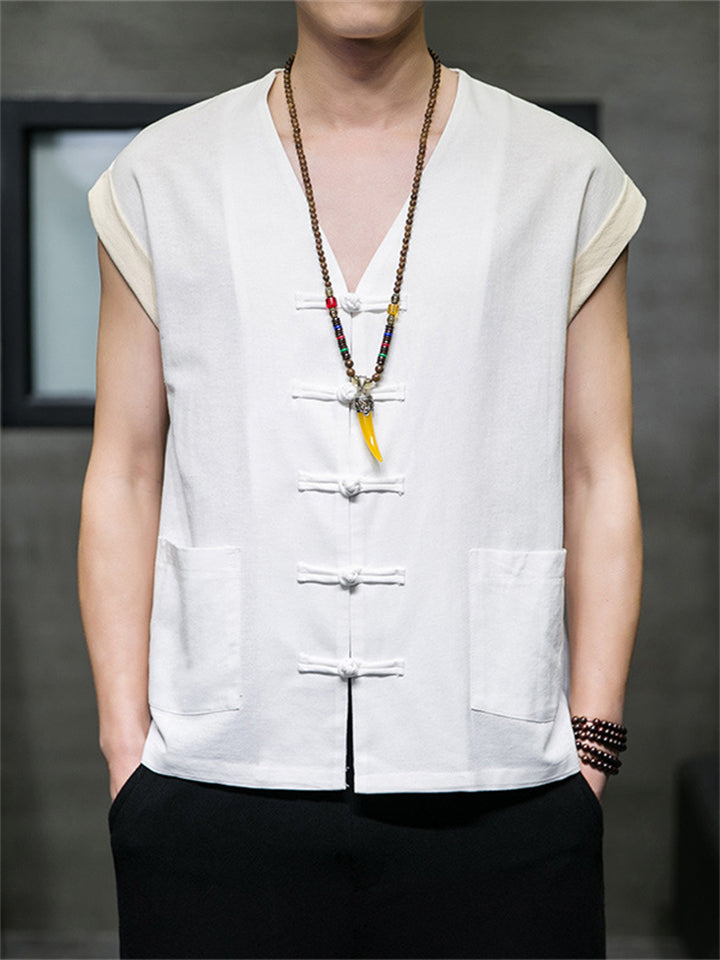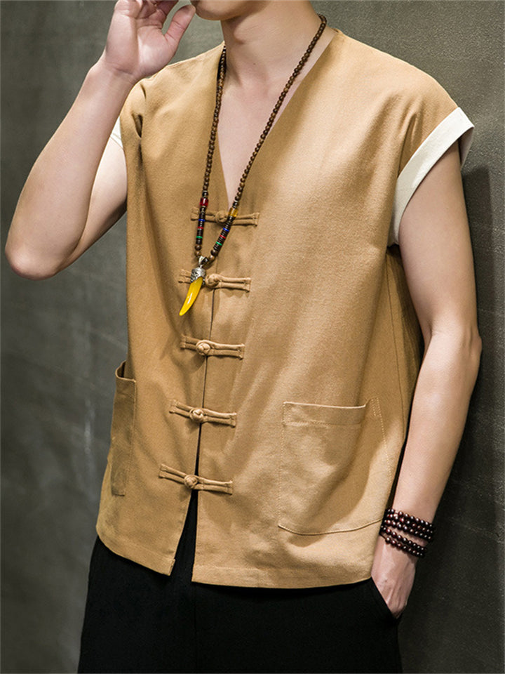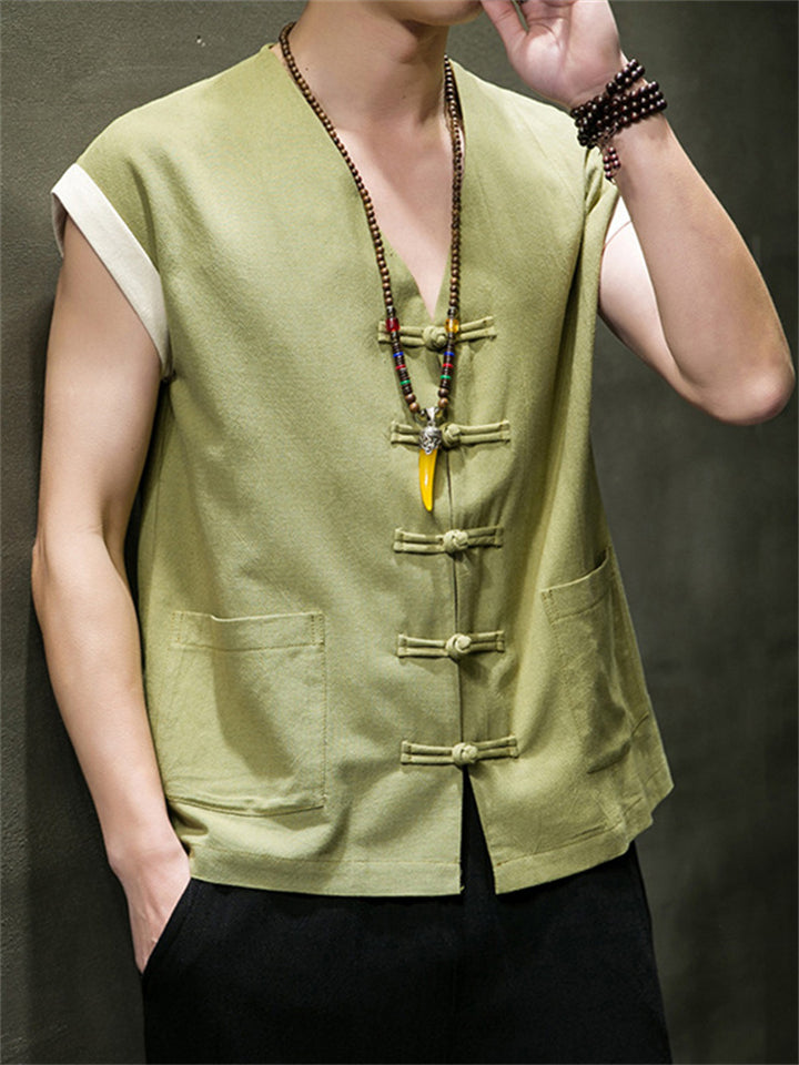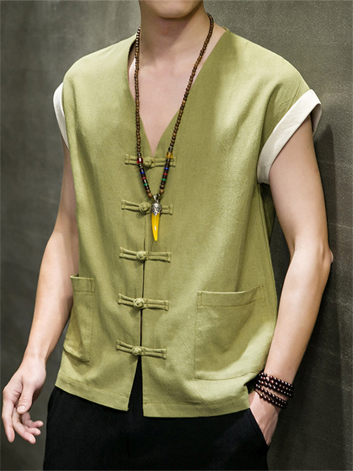 Men's Summer Cotton Linen Breathable Button Sleeveless Vest