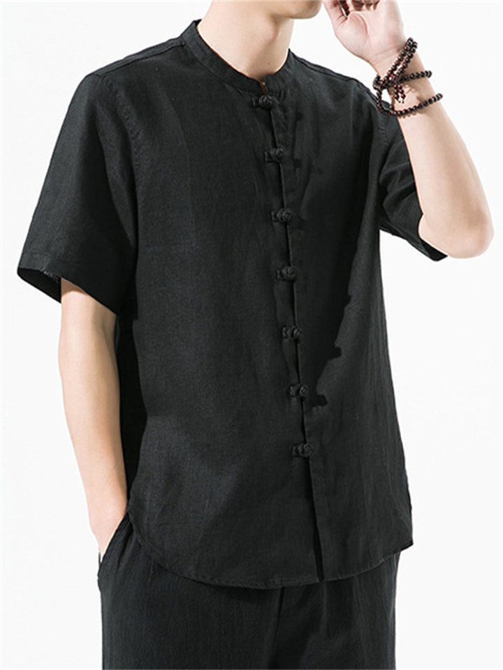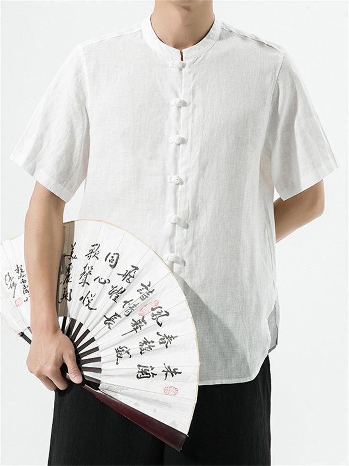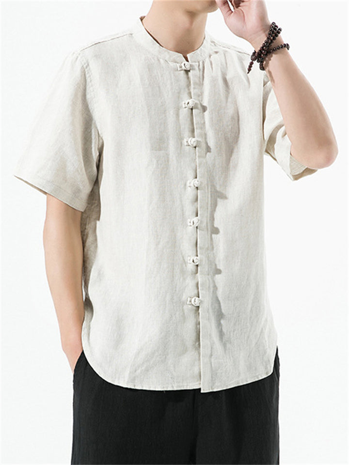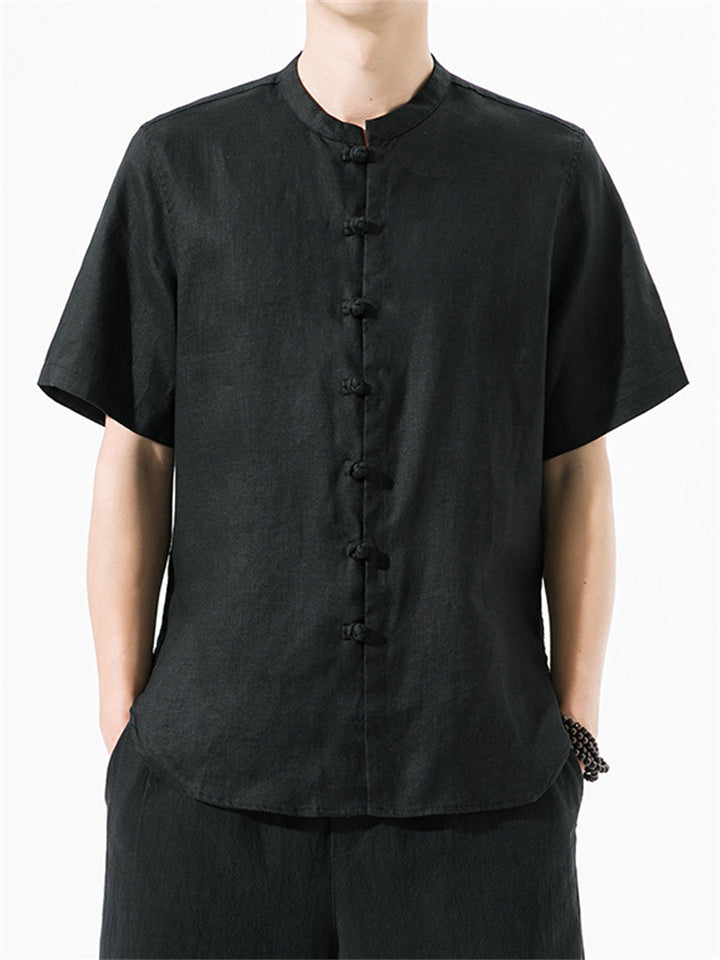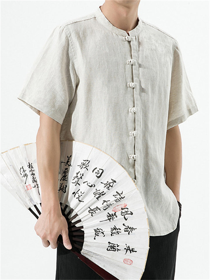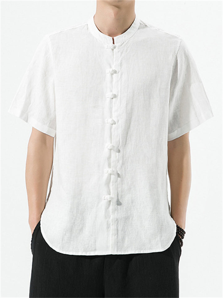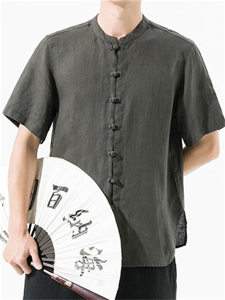 Men's Simple Chinese Style Ramine Stand Collar Tangsuit Shirts