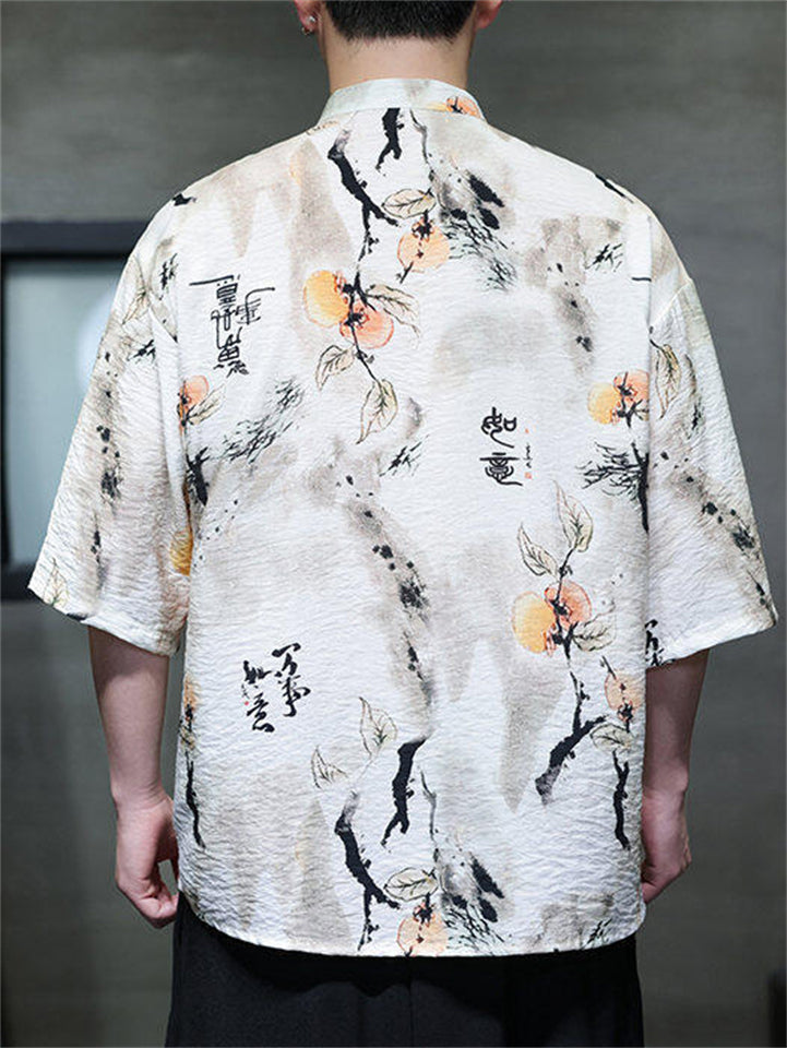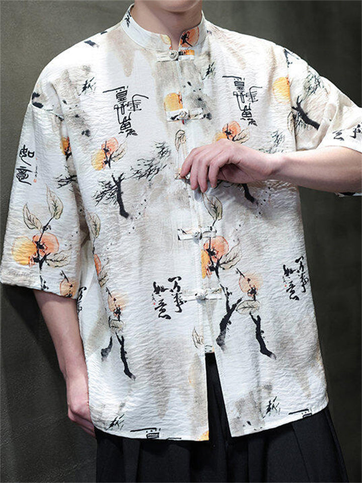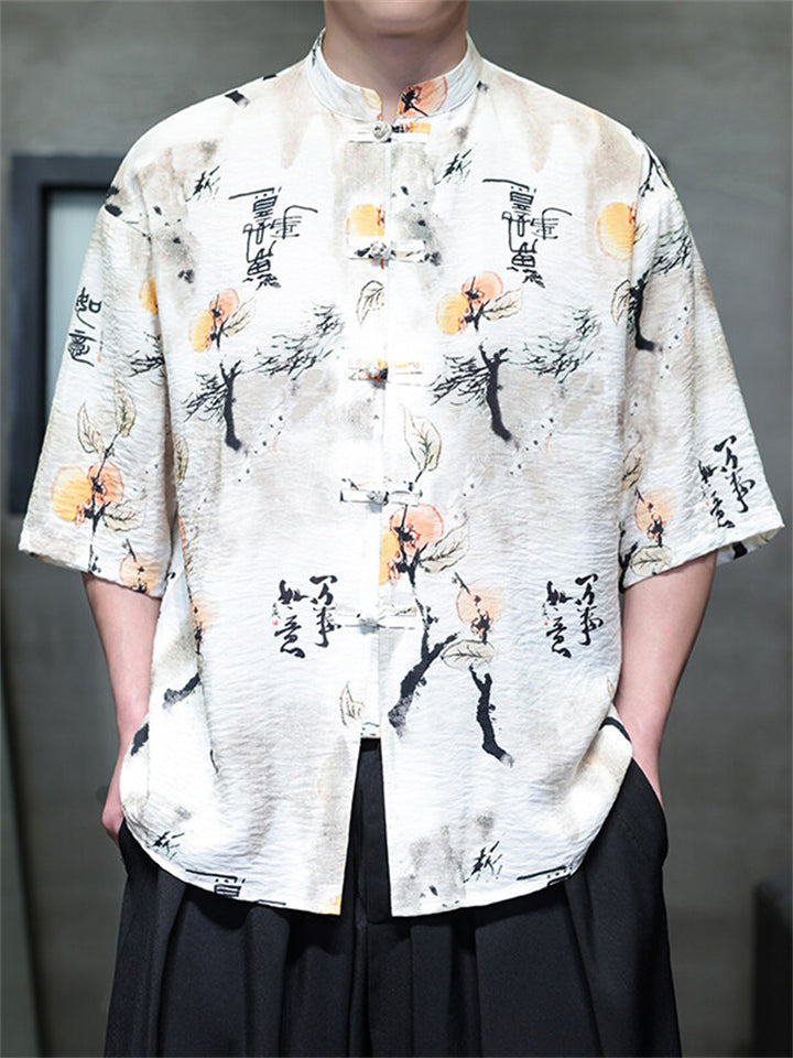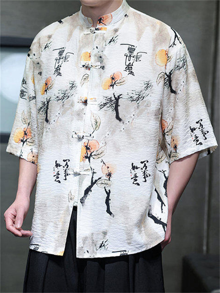 Men's Summer Retro Chinese Style Print Frog Button Half Sleeve Shirts