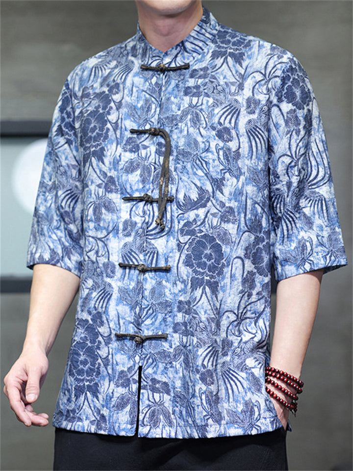 Men's Autumn Vintage Chinese Style Printed Frog Button Tangsuit Shirts