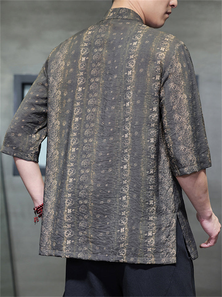 Men's Autumn Vintage Jacquard Stand Collar Long Sleeve Shirts