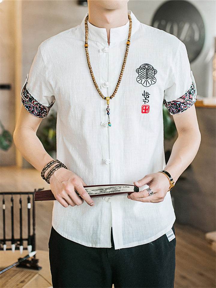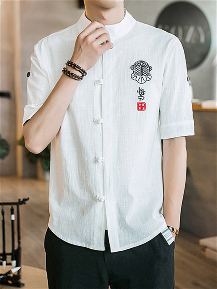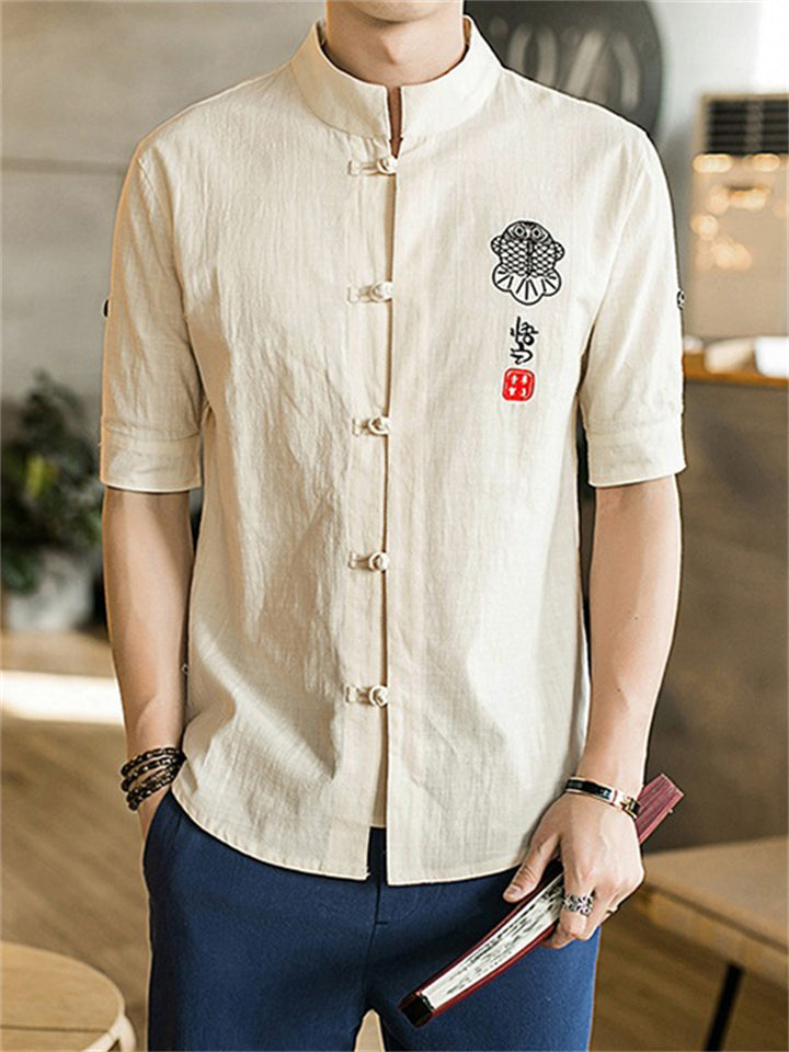 Men's Simple Chinese Style Ramine Stand Collar Tangsuit Shirts