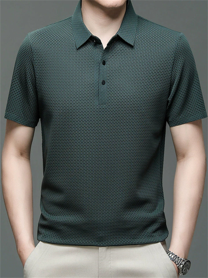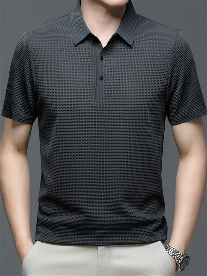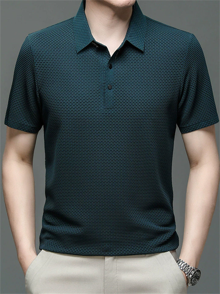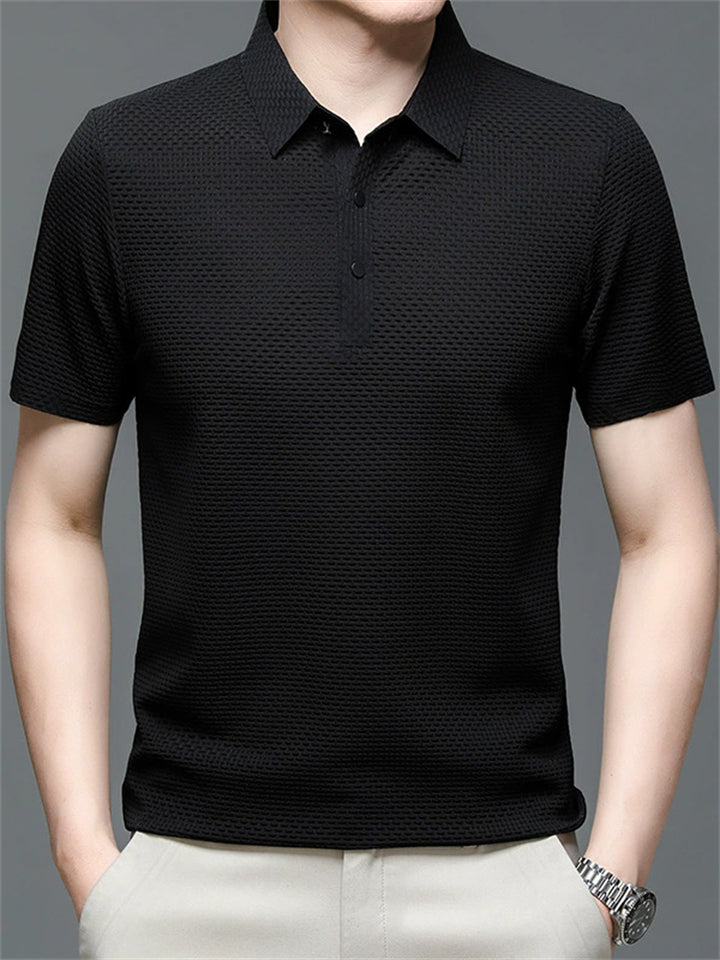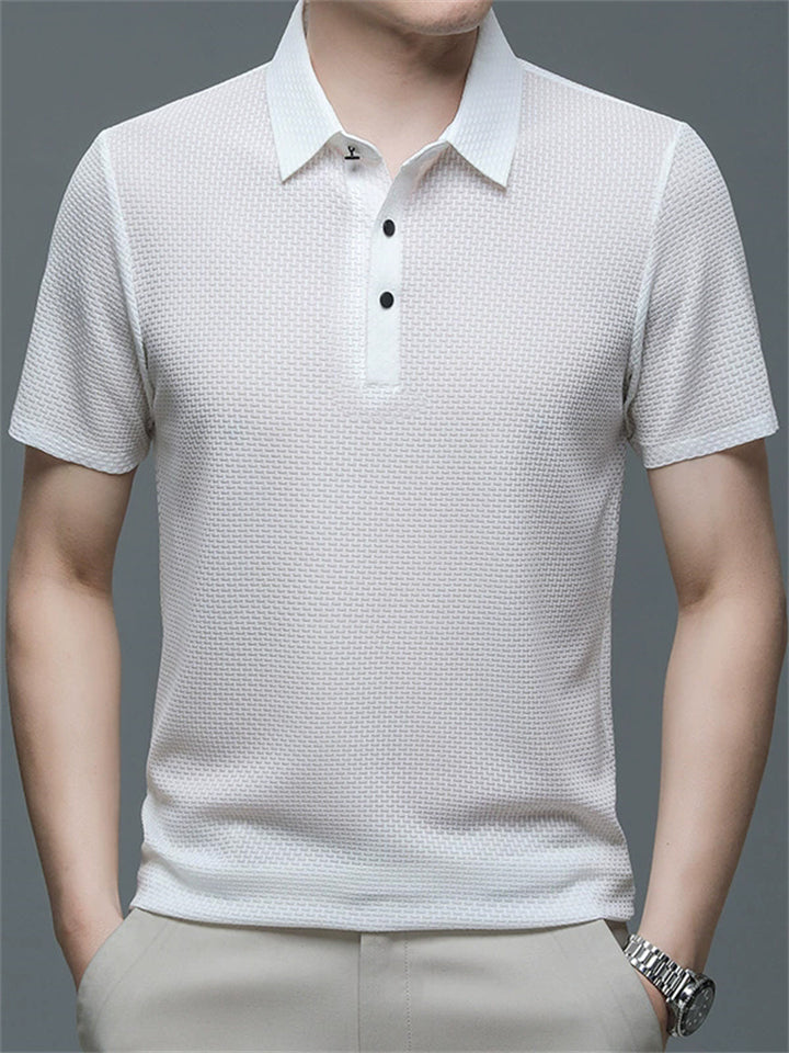 Men's Summer Solid Color Quarter Button Short Sleeve Polo Shirts