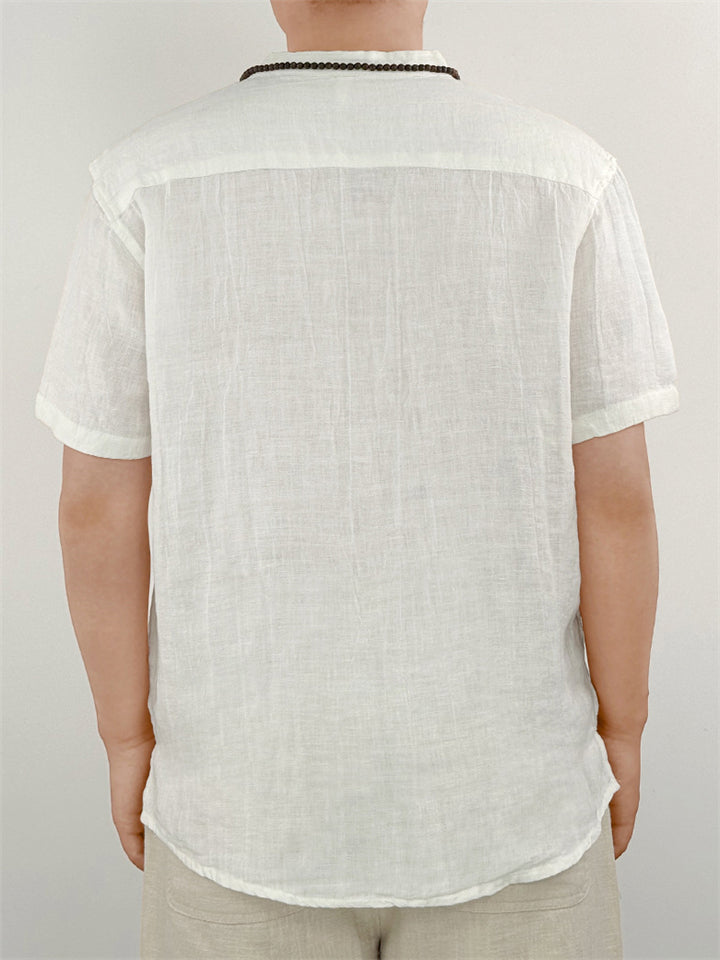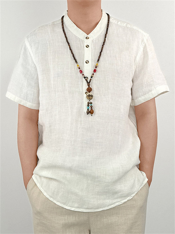 Men's Summer Stand Collar Short Sleeve Tang Suit Linen Shirt