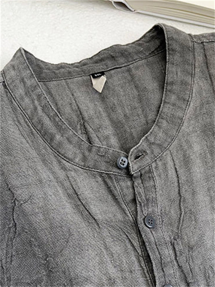 Men's Vintage Summer Solid Color 3/4 Sleeve Stand Collar Shirts