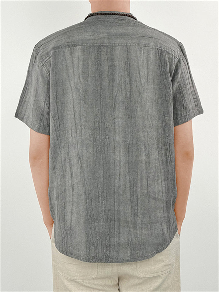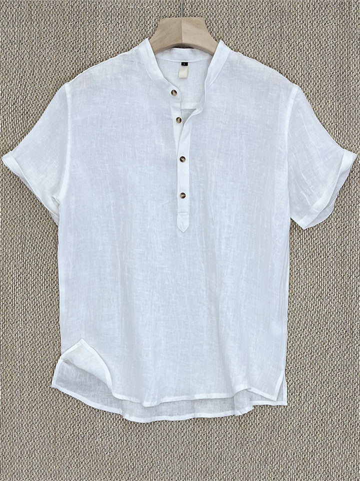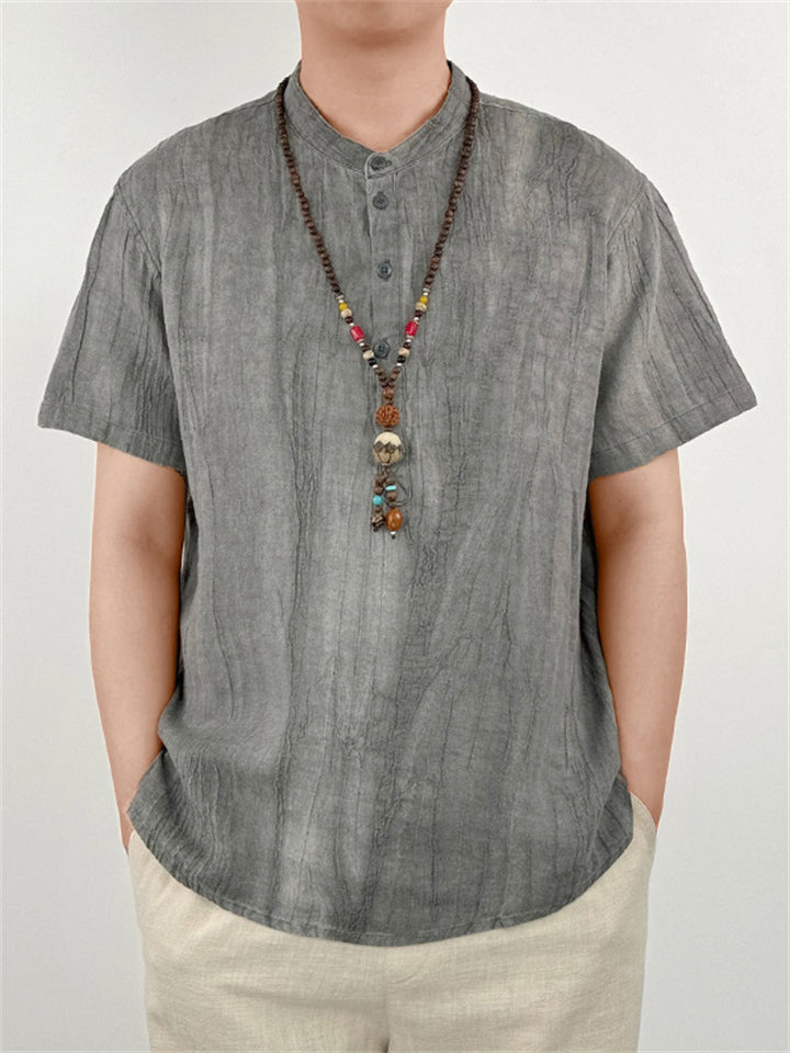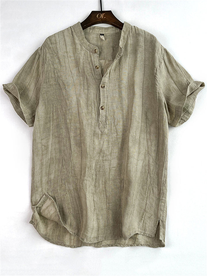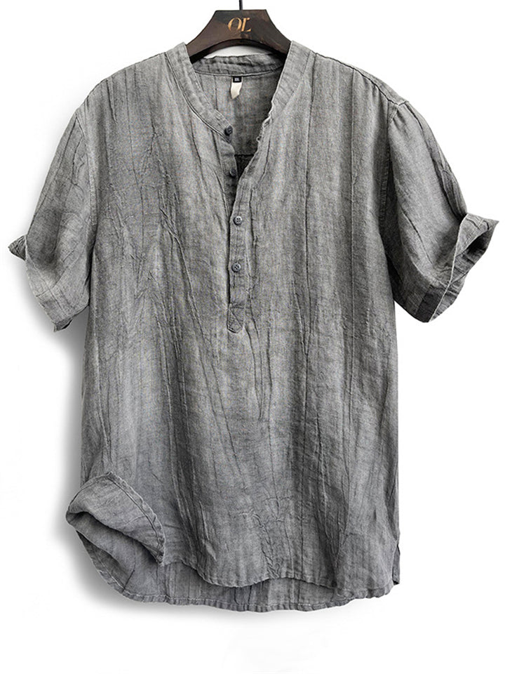 Men's Simple Solid Color Stand Collar Pullover Short Sleeve Shirts
