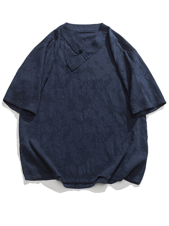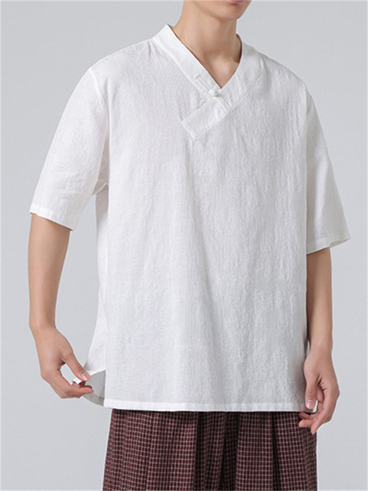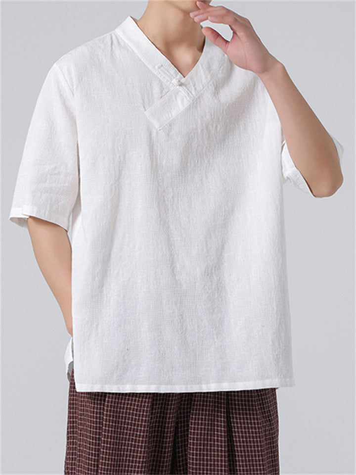 Men's Vintage Summer Solid Color 3/4 Sleeve Stand Collar Shirts