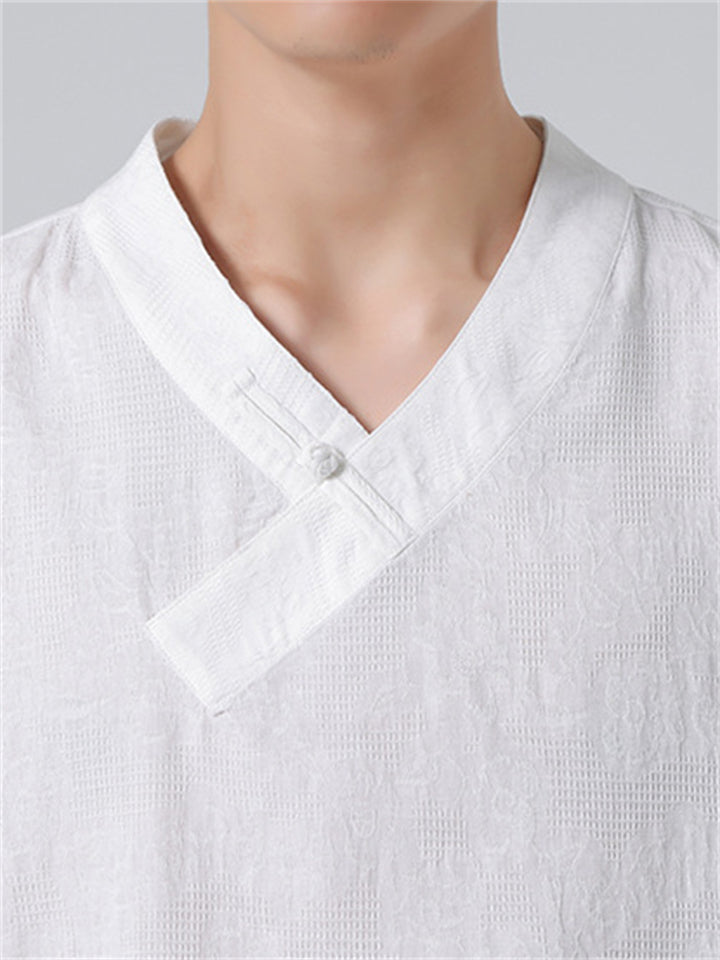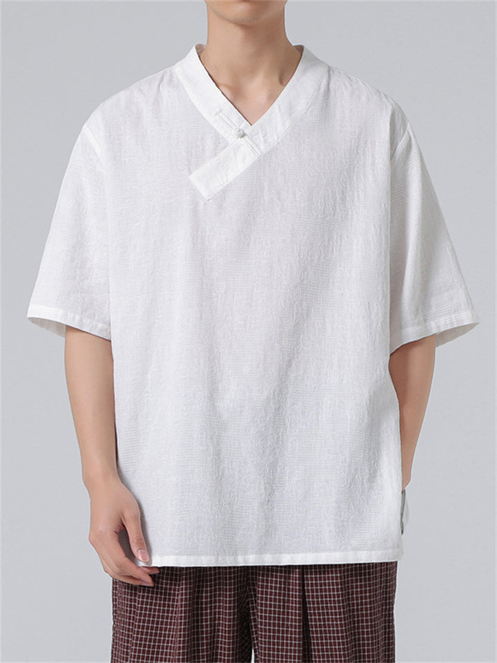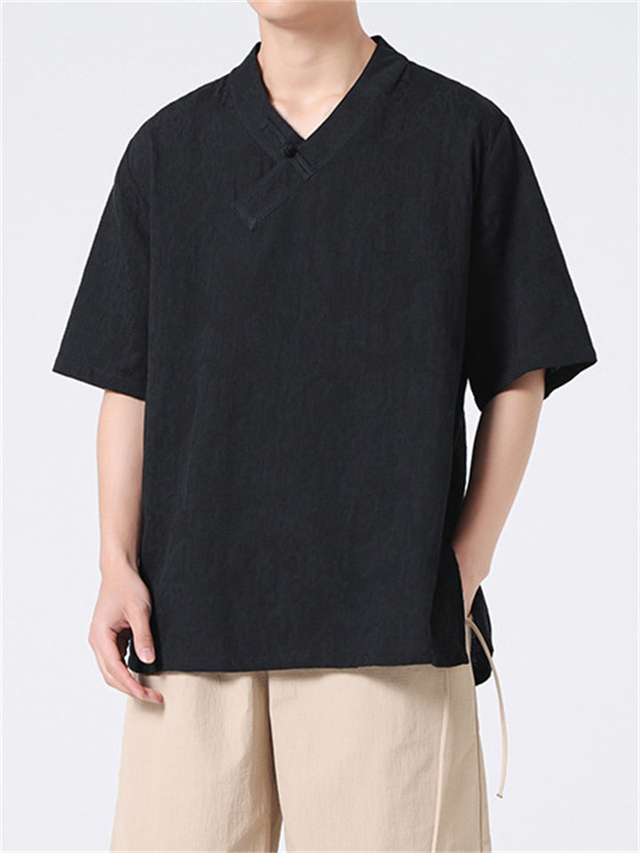 Men's Simple Chinese Style Ramine Stand Collar Tangsuit Shirts