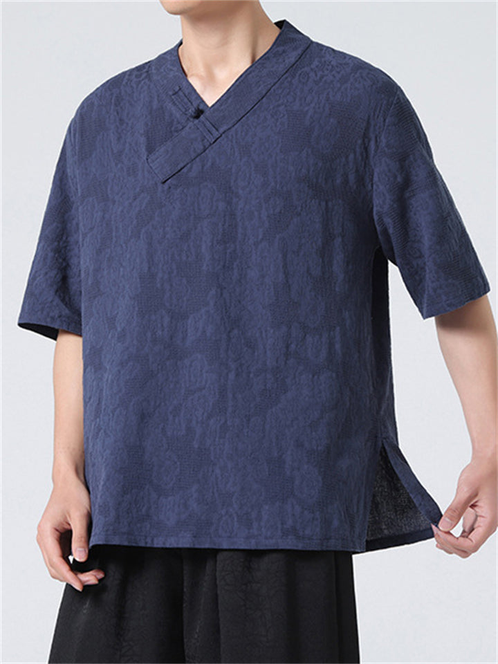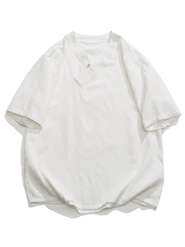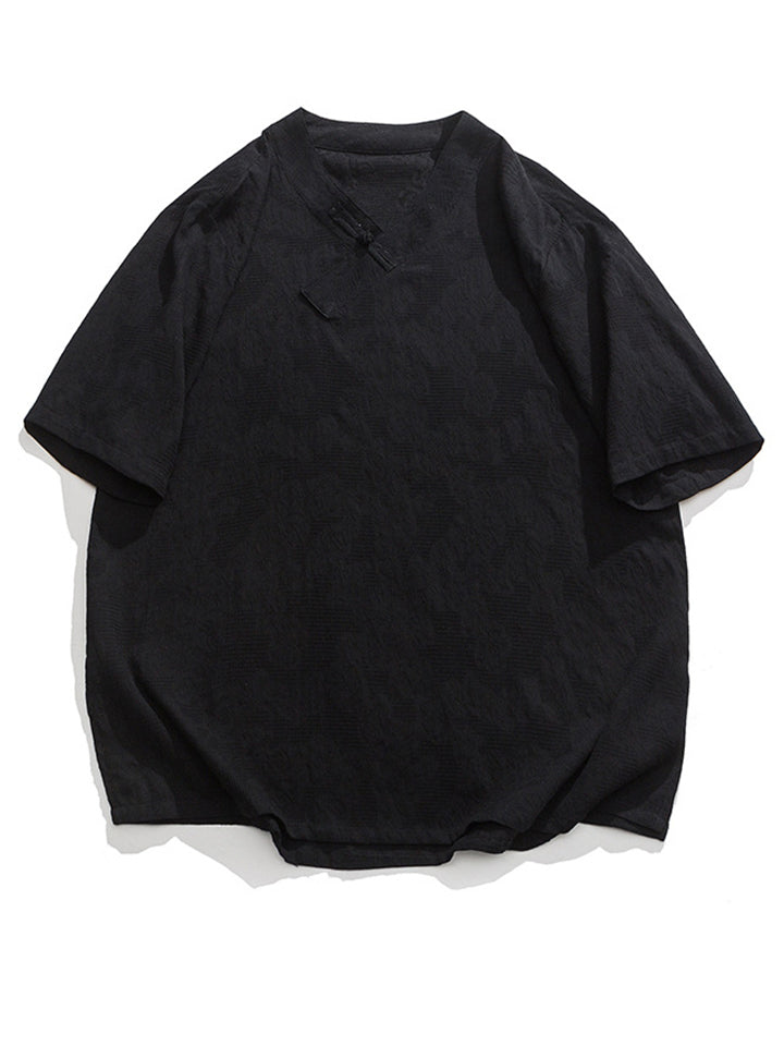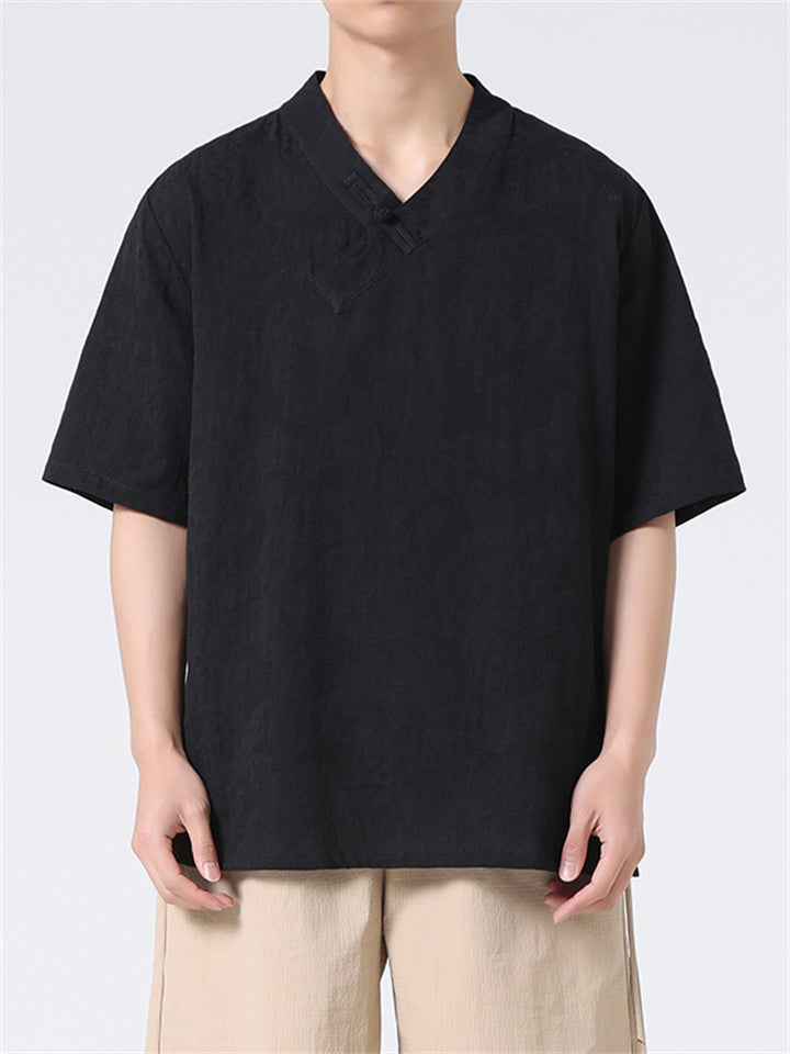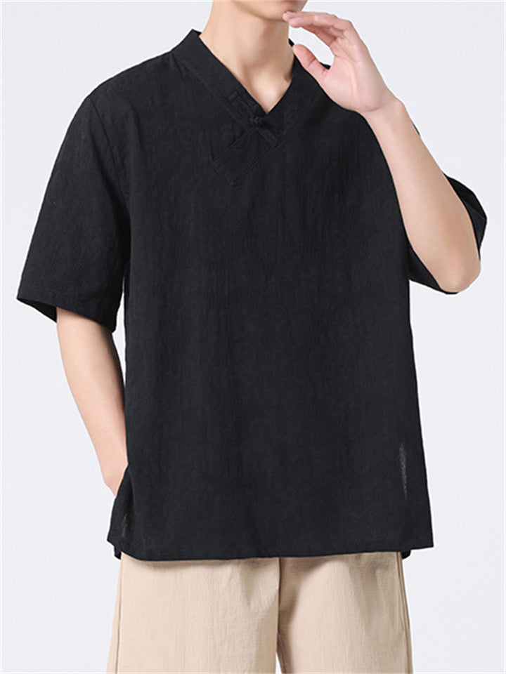 Men's Simple Solid Color Stand Collar Pullover Short Sleeve Shirts