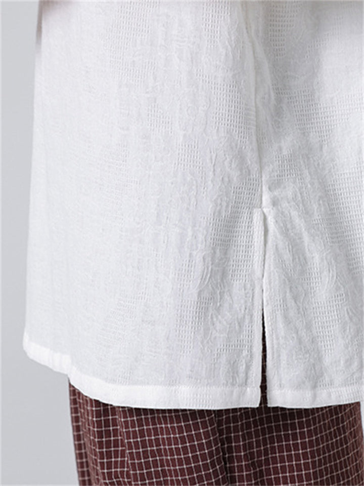 Men's Autumn Solid Color Zen Style Pullover Long Sleeve Shirts