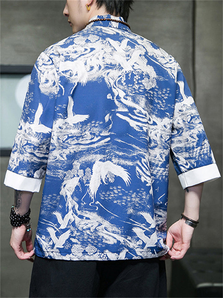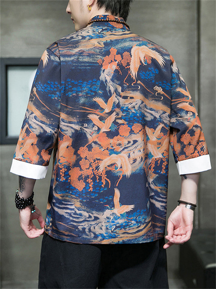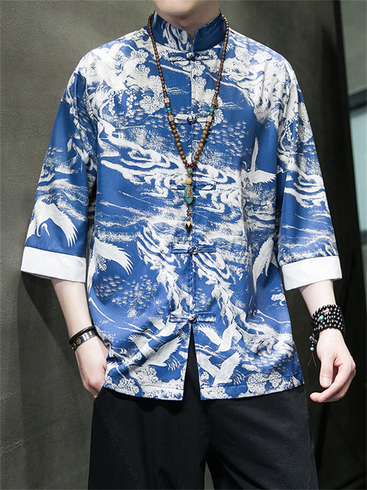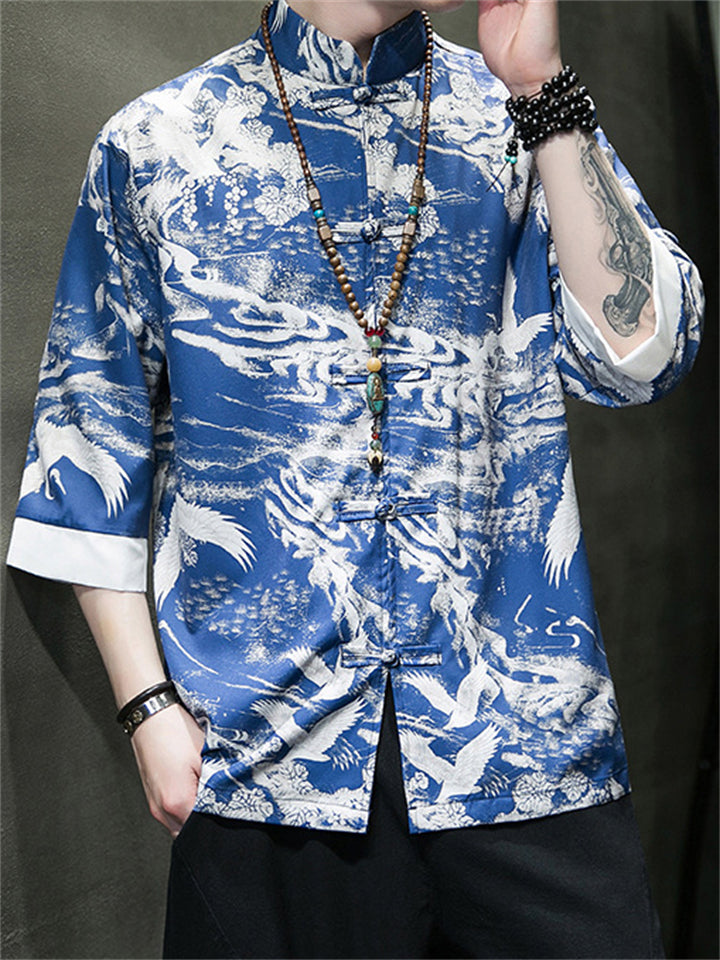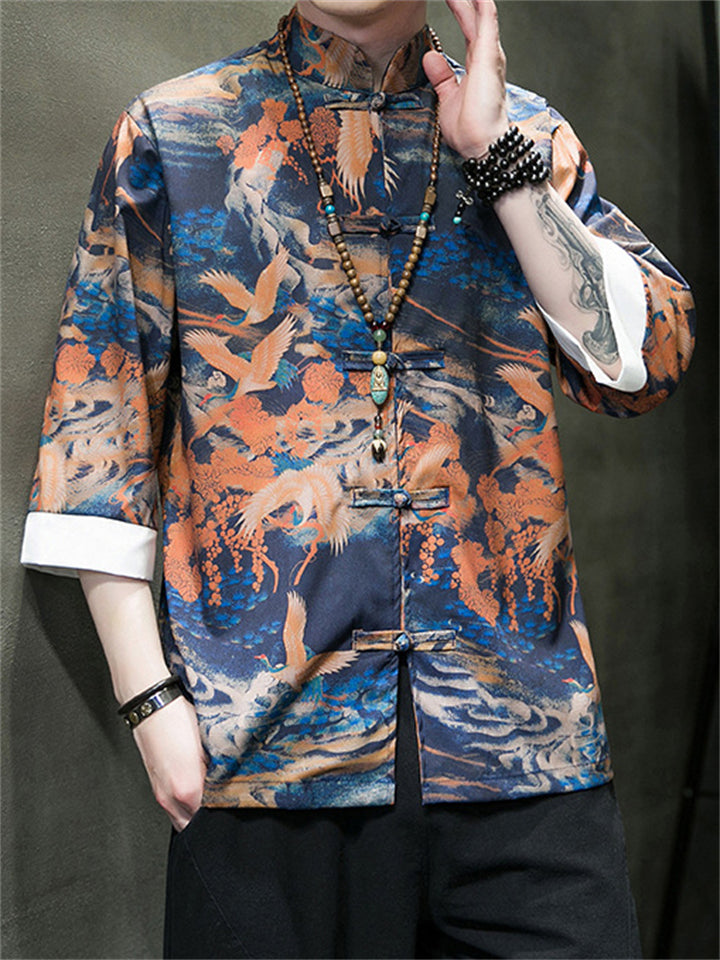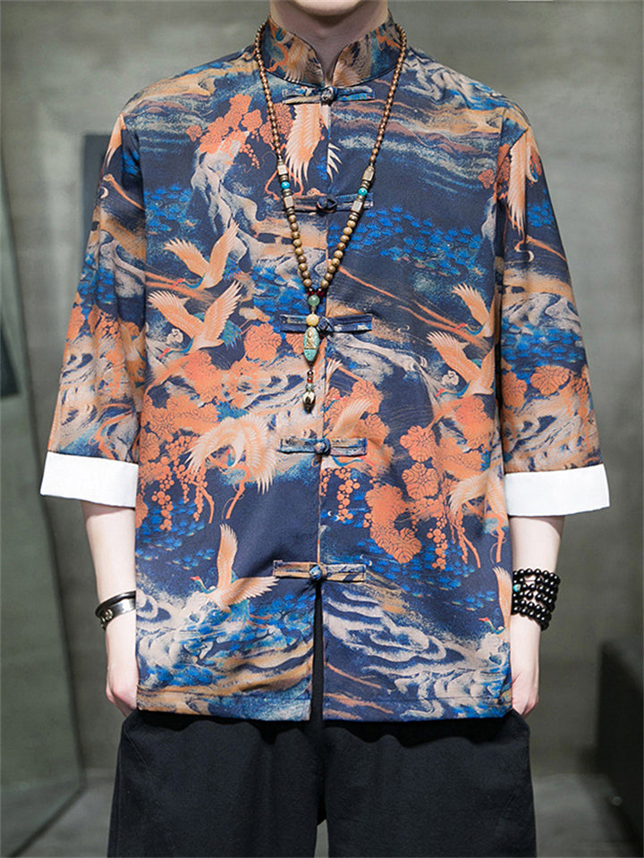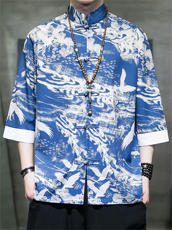 Men's Tang Suit Crane Print Half Sleeve Shirt