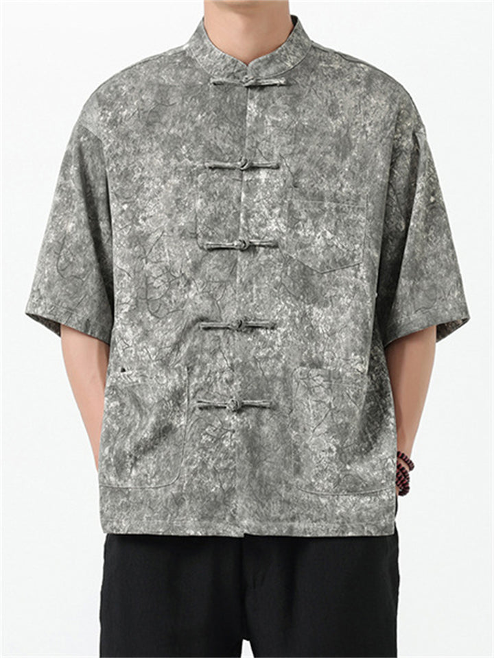 Men's Autumn Vintage Chinese Style Printed Frog Button Tangsuit Shirts