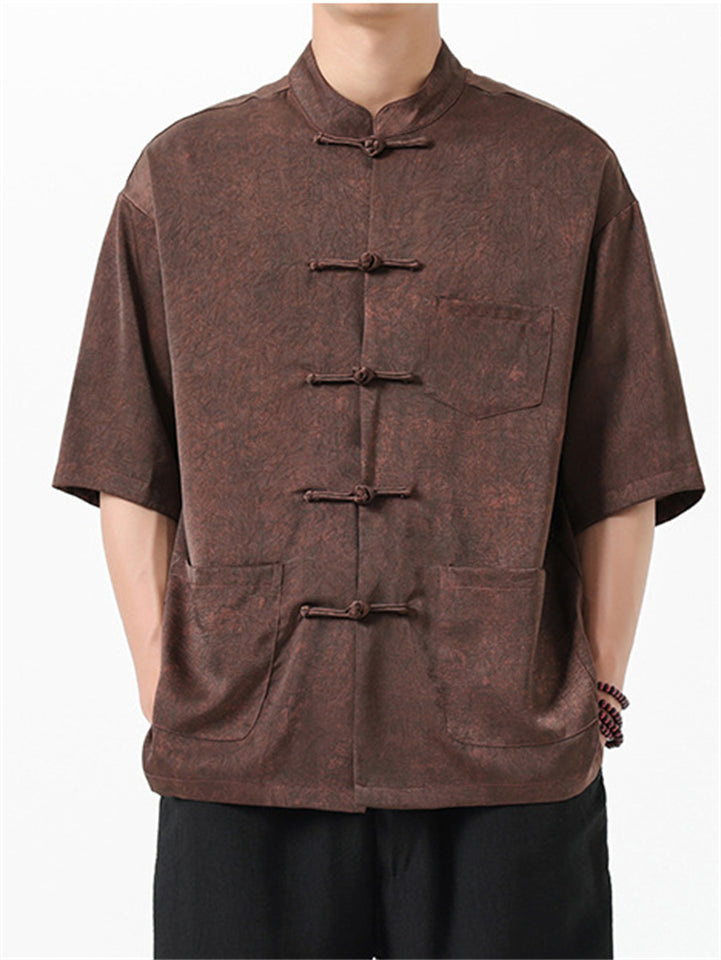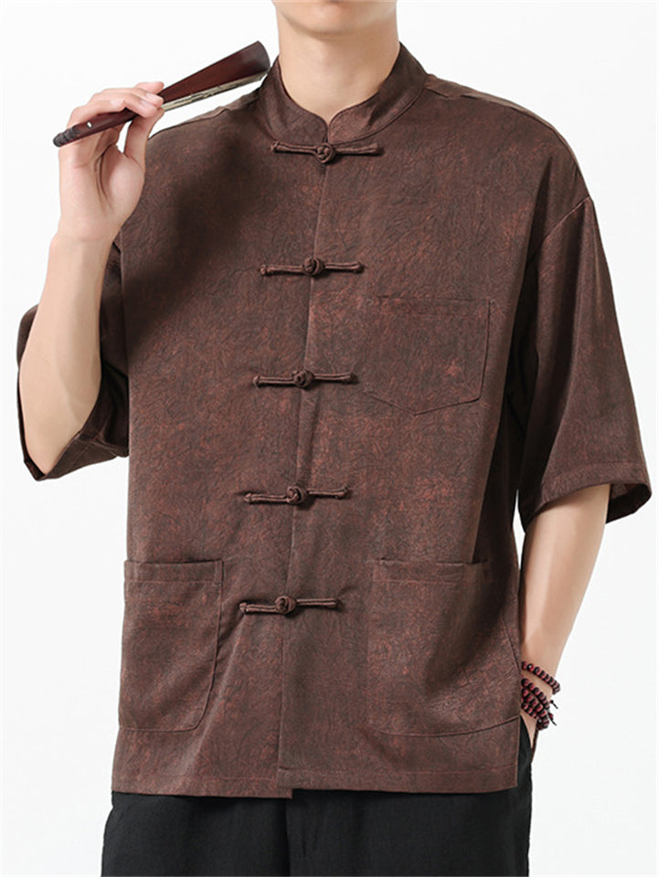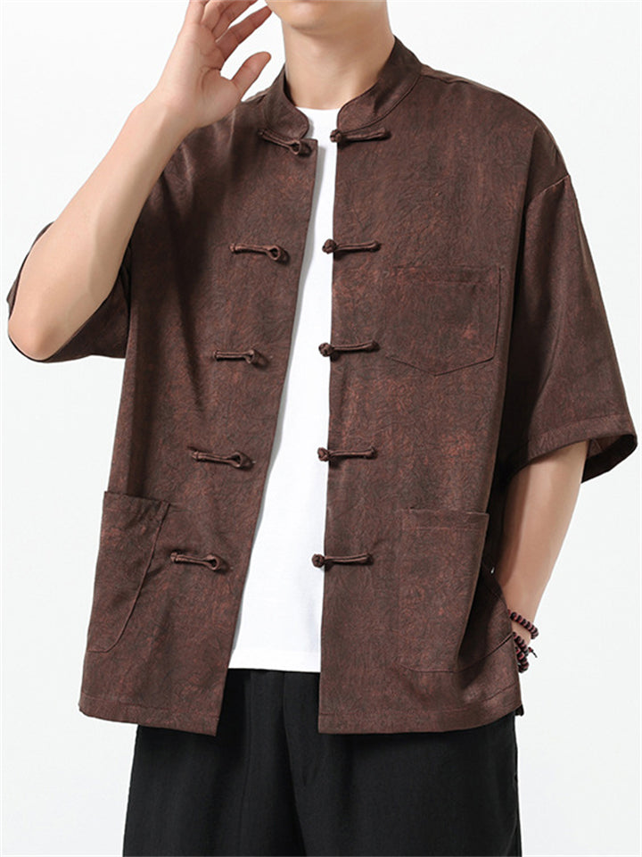 Men's Simple Chinese Style Ramine Stand Collar Tangsuit Shirts