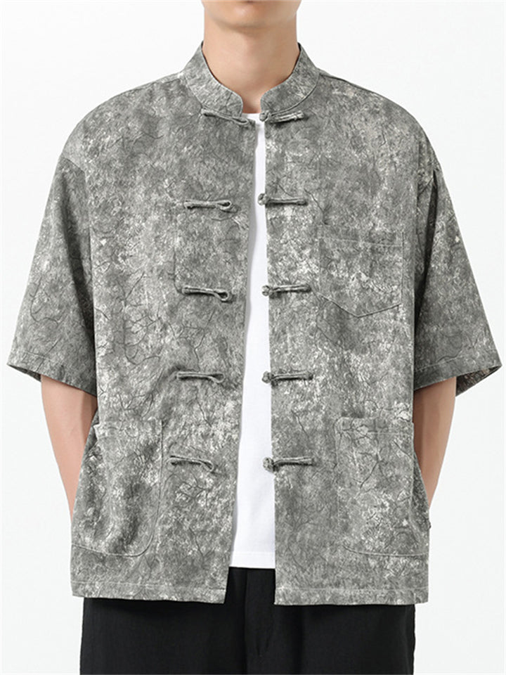 Men's Texture Print Stand Collar Half Sleeve Tang Suit Shirts