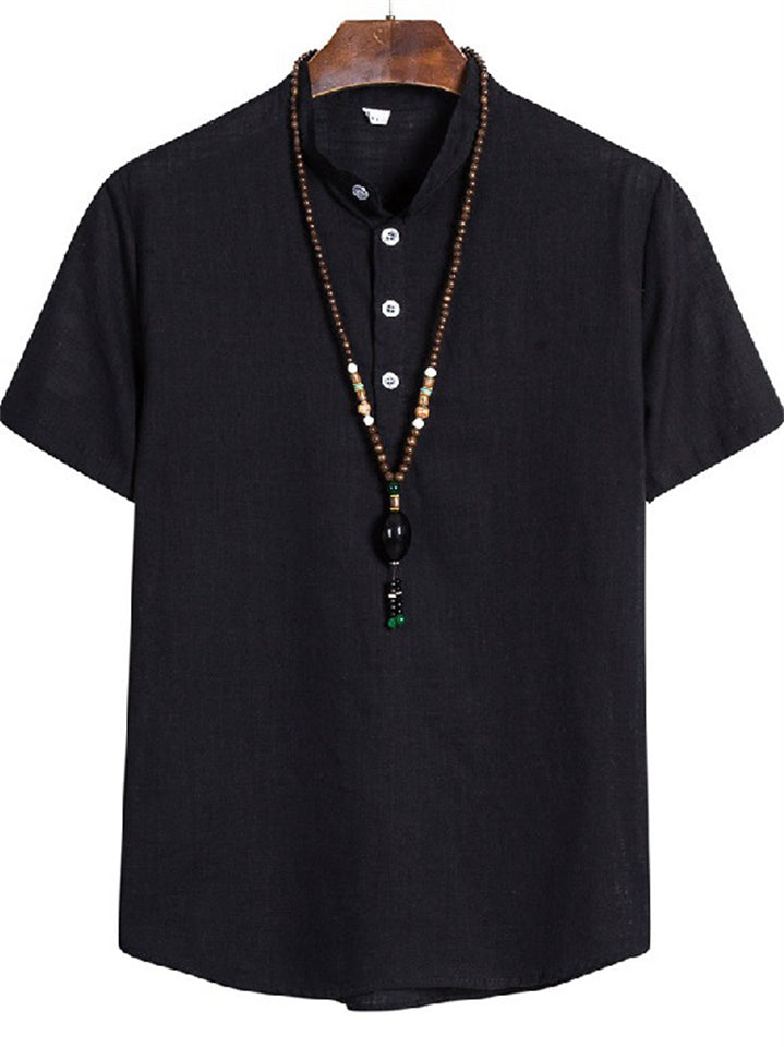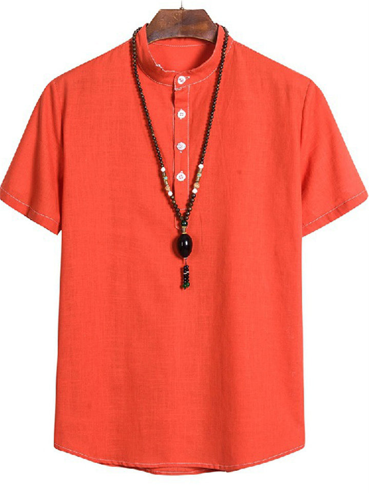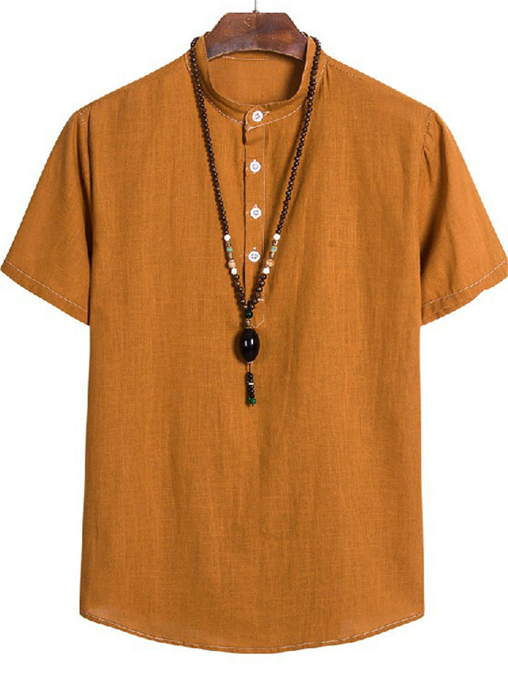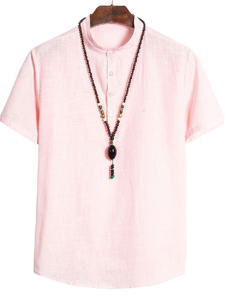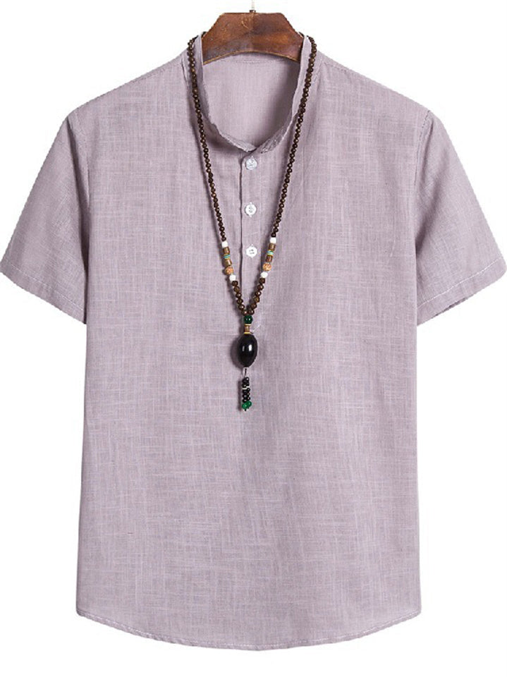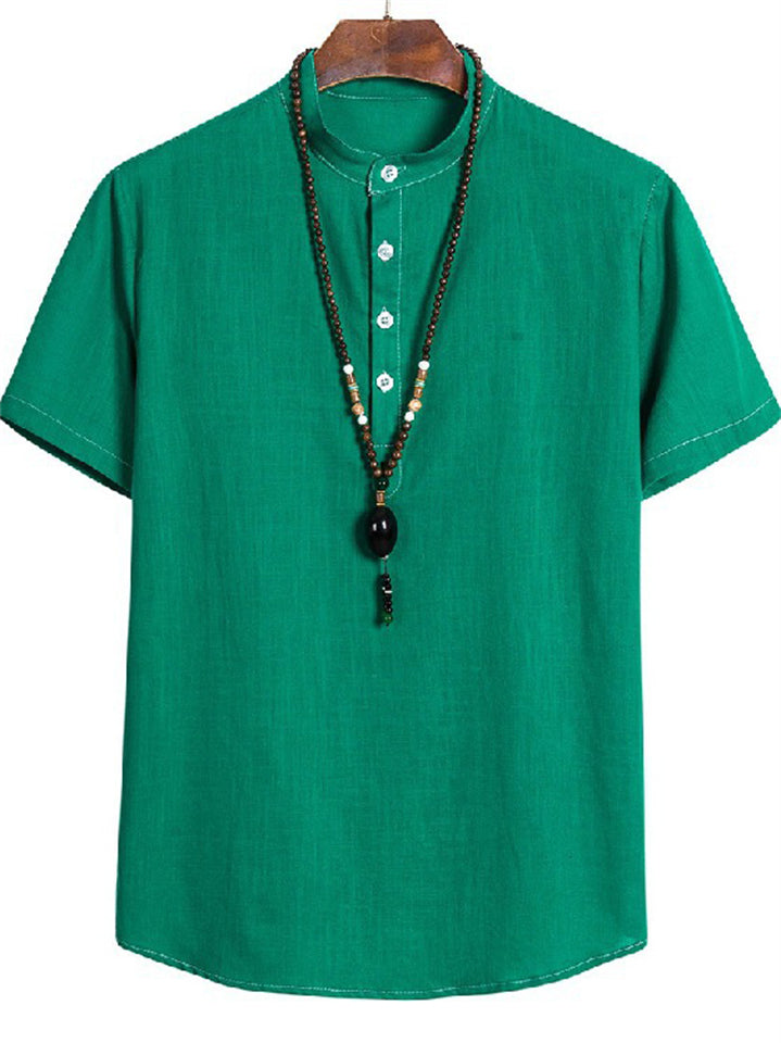 Men's Simple Solid Color Stand Collar Pullover Short Sleeve Shirts