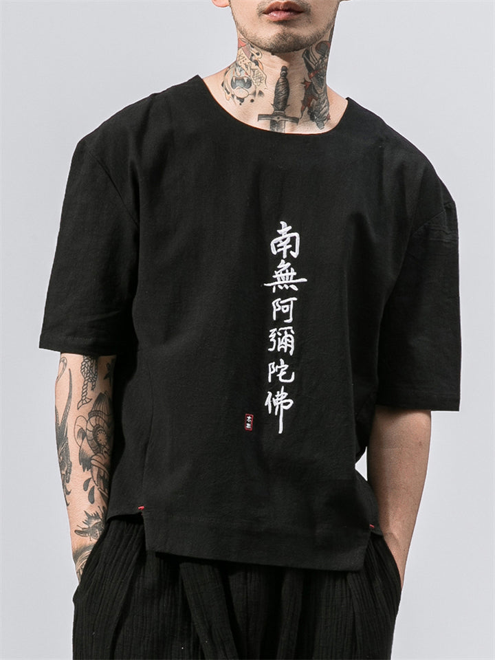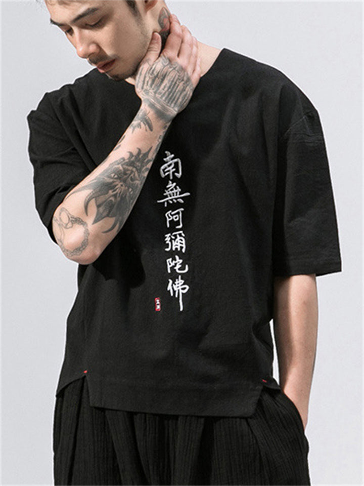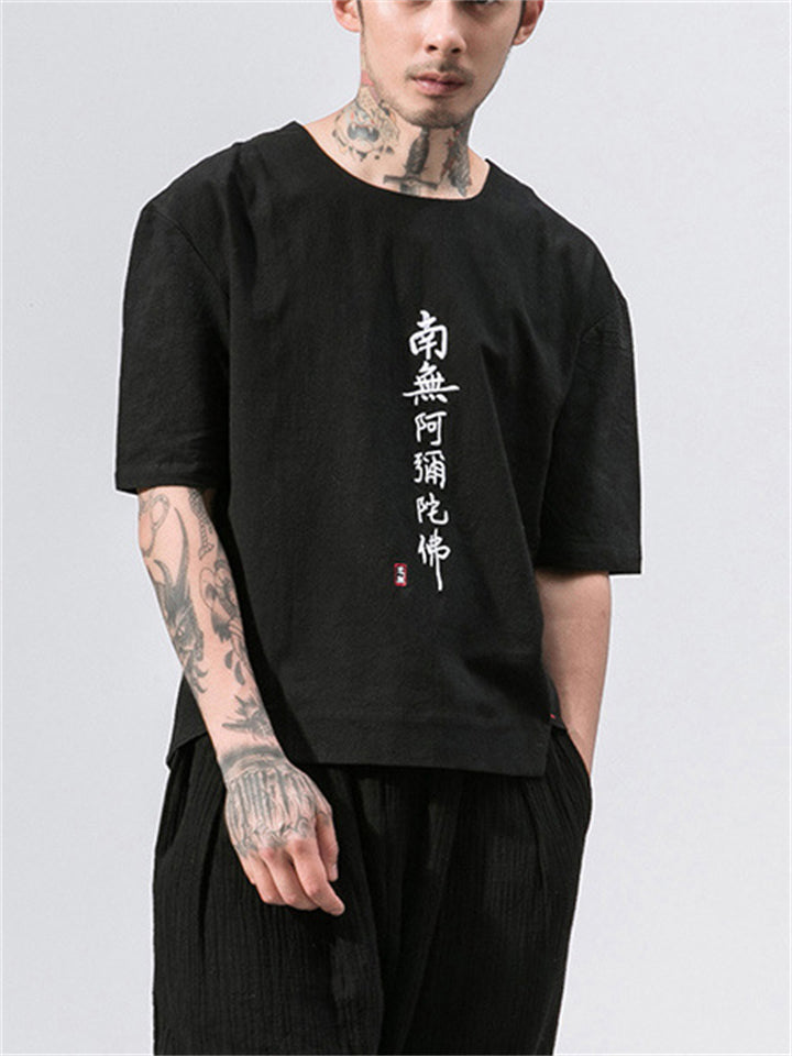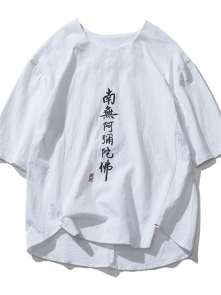 Men's Autumn Solid Color Zen Style Pullover Long Sleeve Shirts