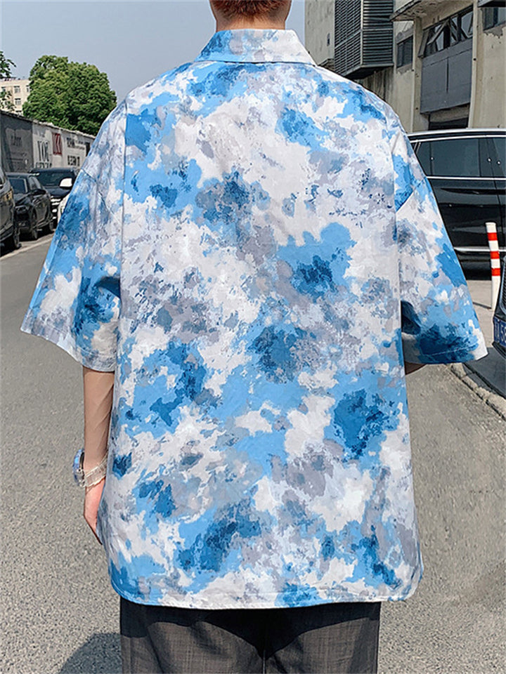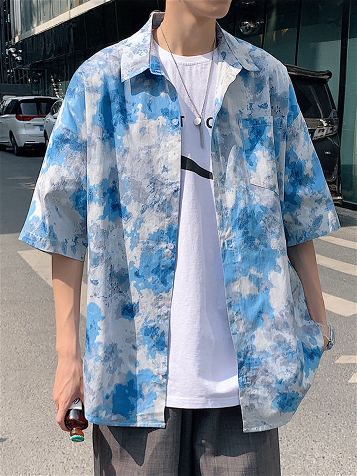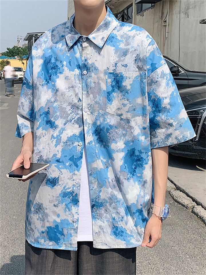 New Arrival Chic Blue Printed Random Dyeing Men's Shirts