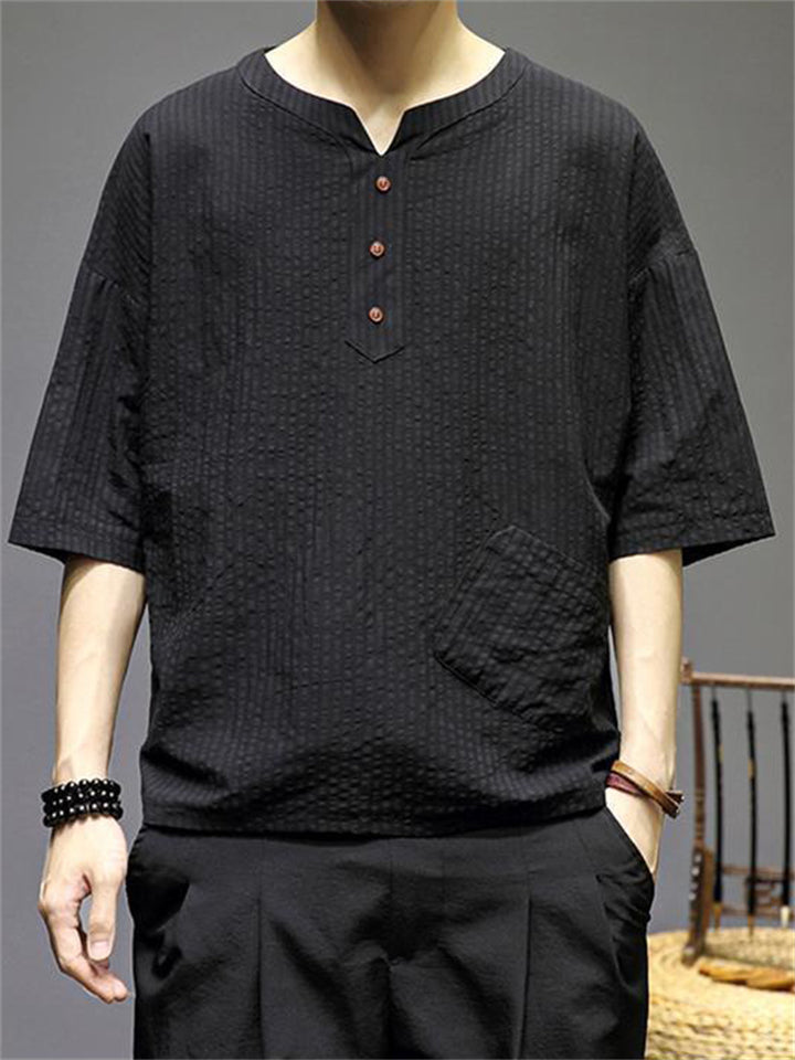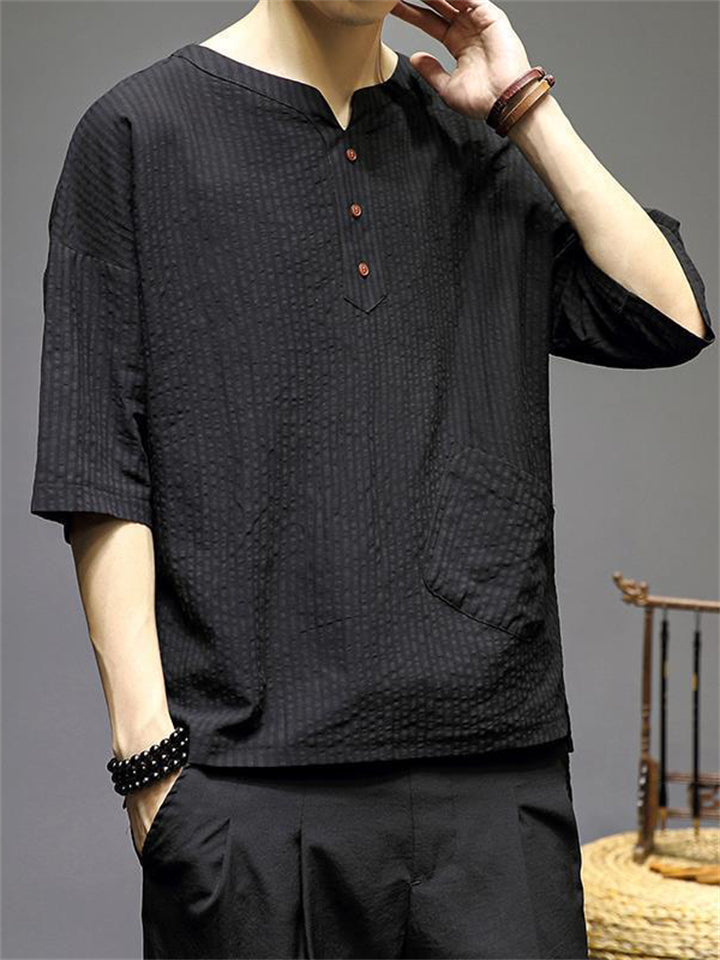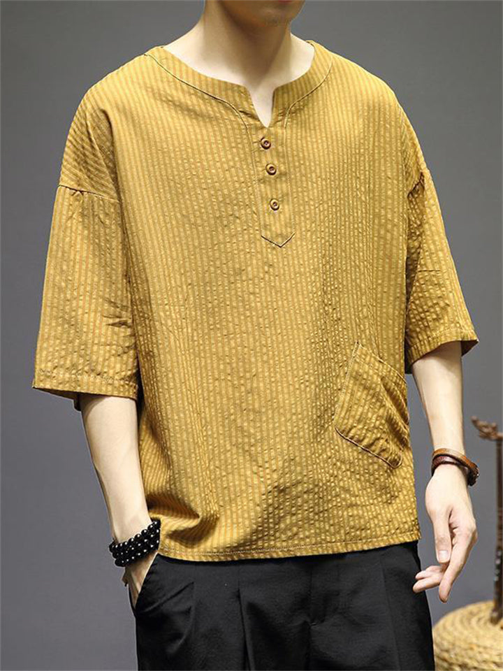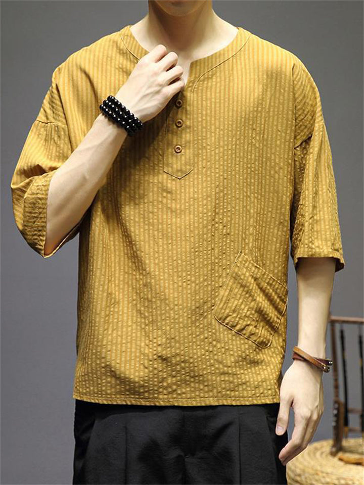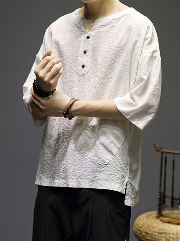 Men's Vintage Summer Solid Color 3/4 Sleeve Stand Collar Shirts