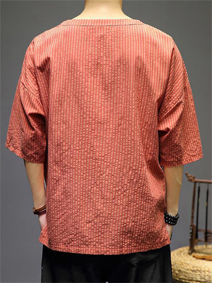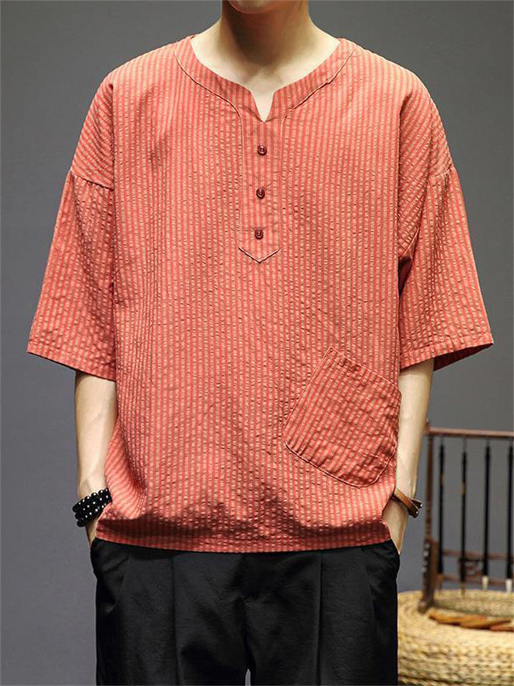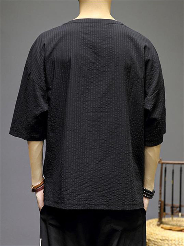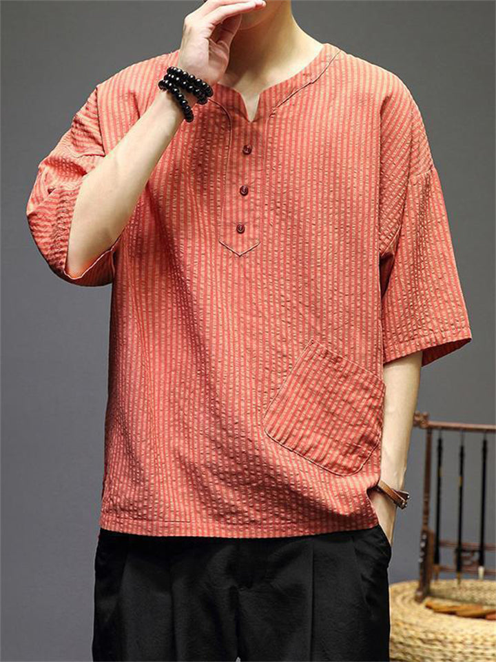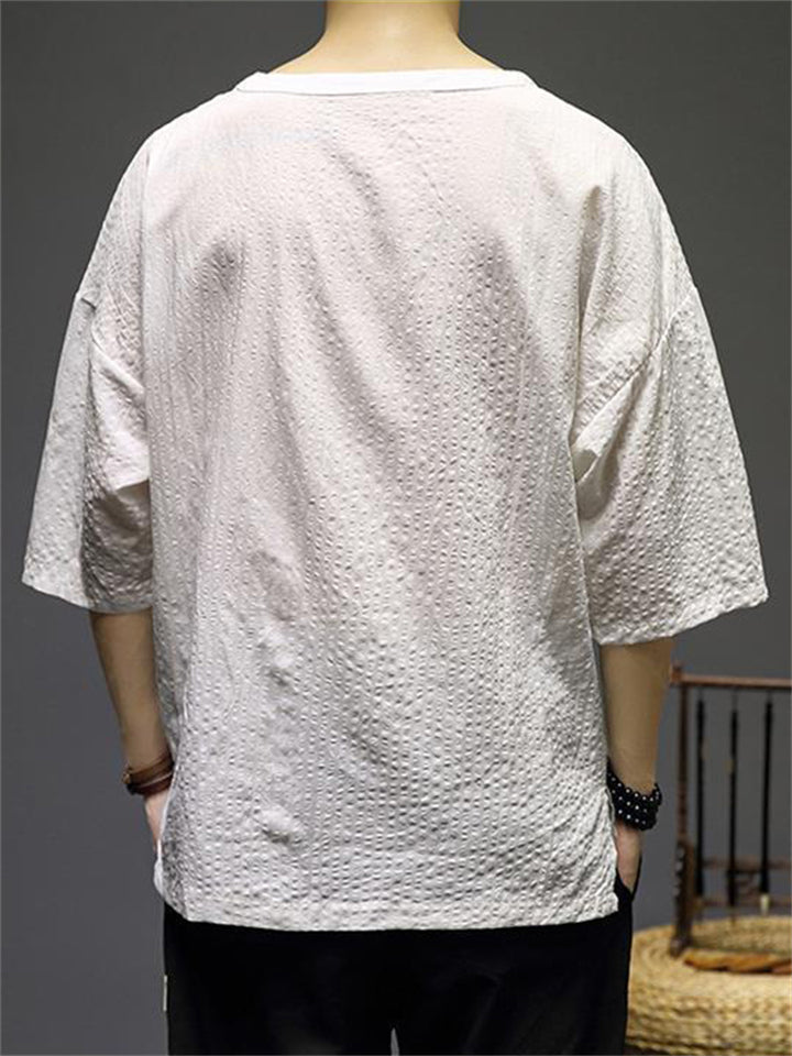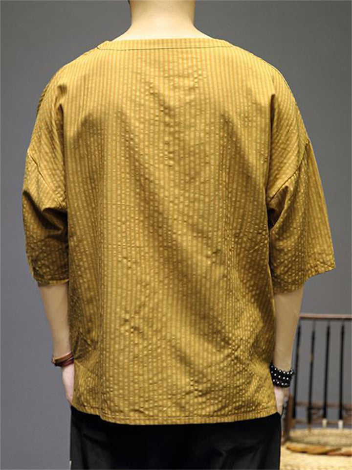 Men's Vintage Summer Solid Color 3/4 Sleeve Stand Collar Shirts