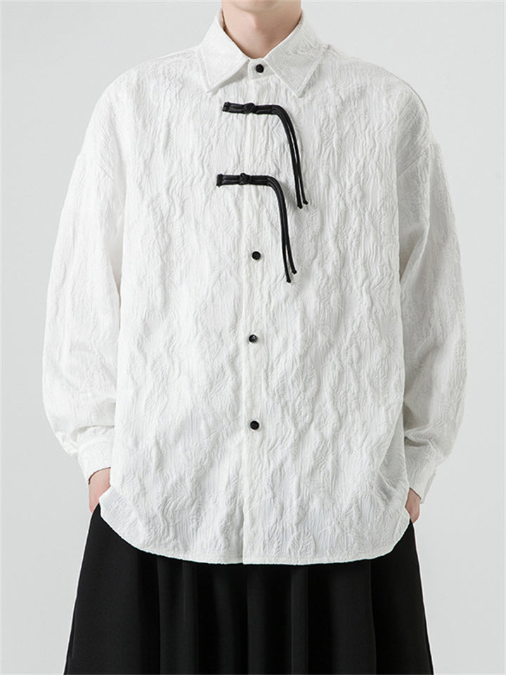 New Men's Jacquard Long Sleeve Lapel Shirt