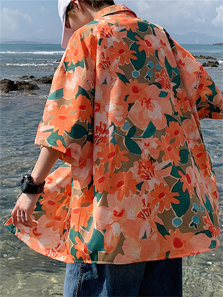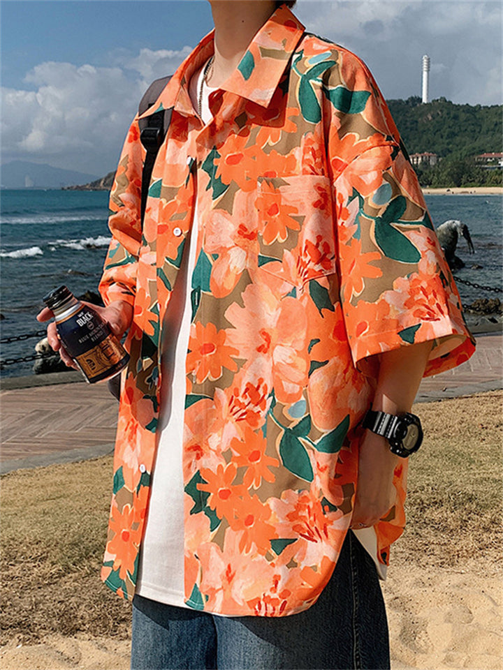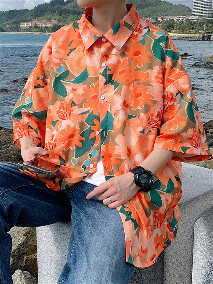 Orange Printed Comfortable Breathable Casual Male Shirts
