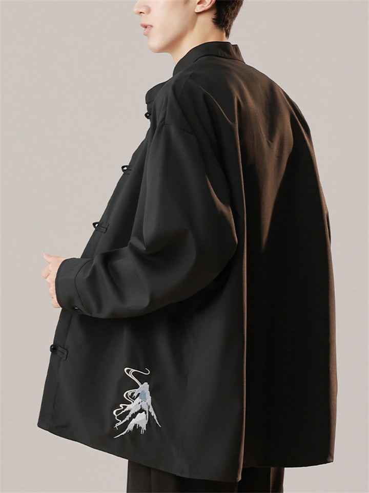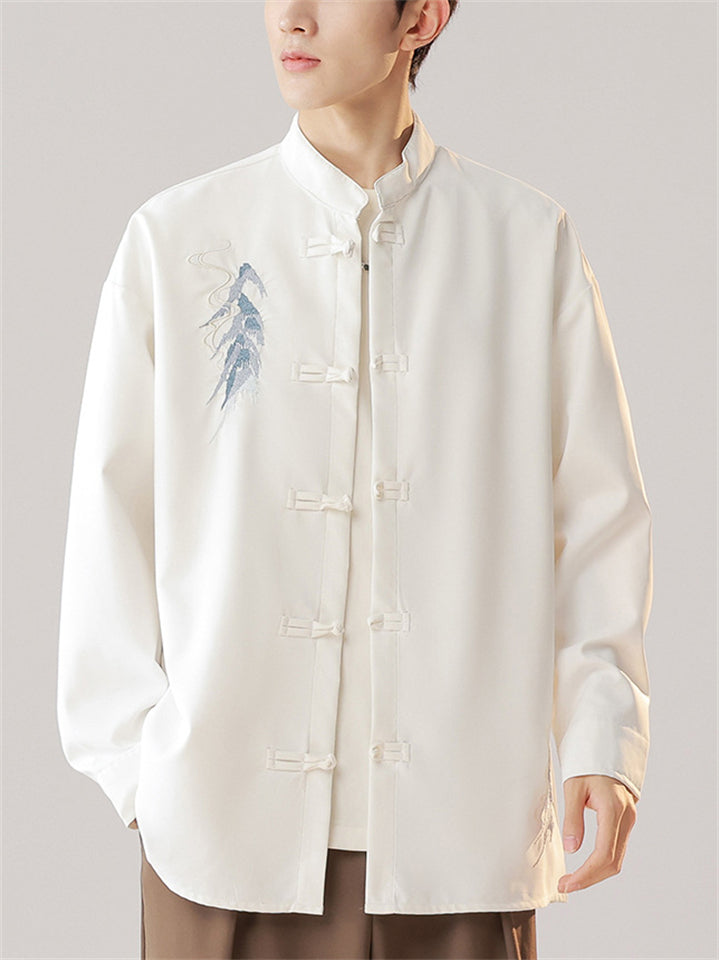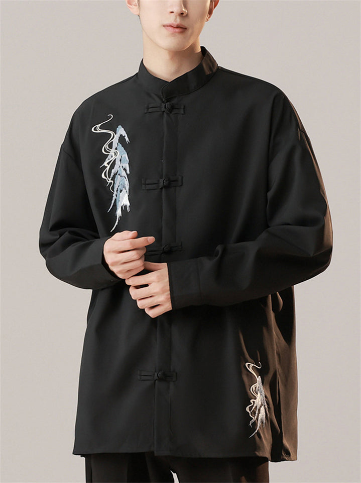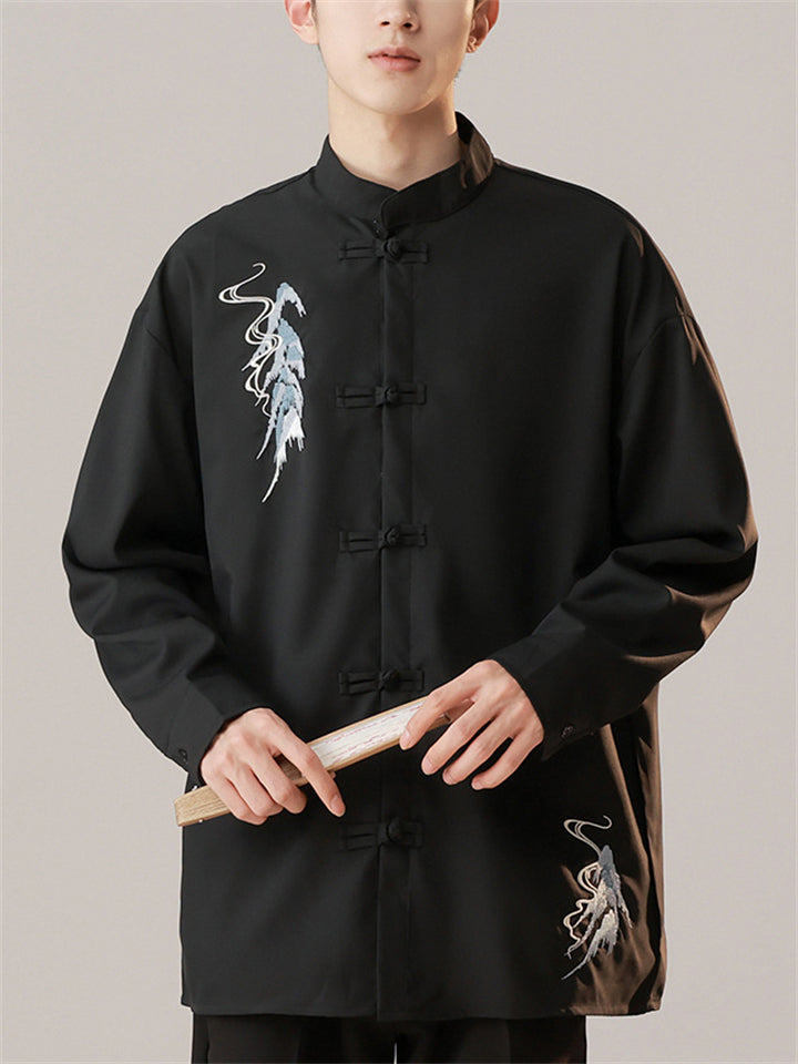Oriental Style Men's Stand Collar Embroidered Long Sleeve Shirts