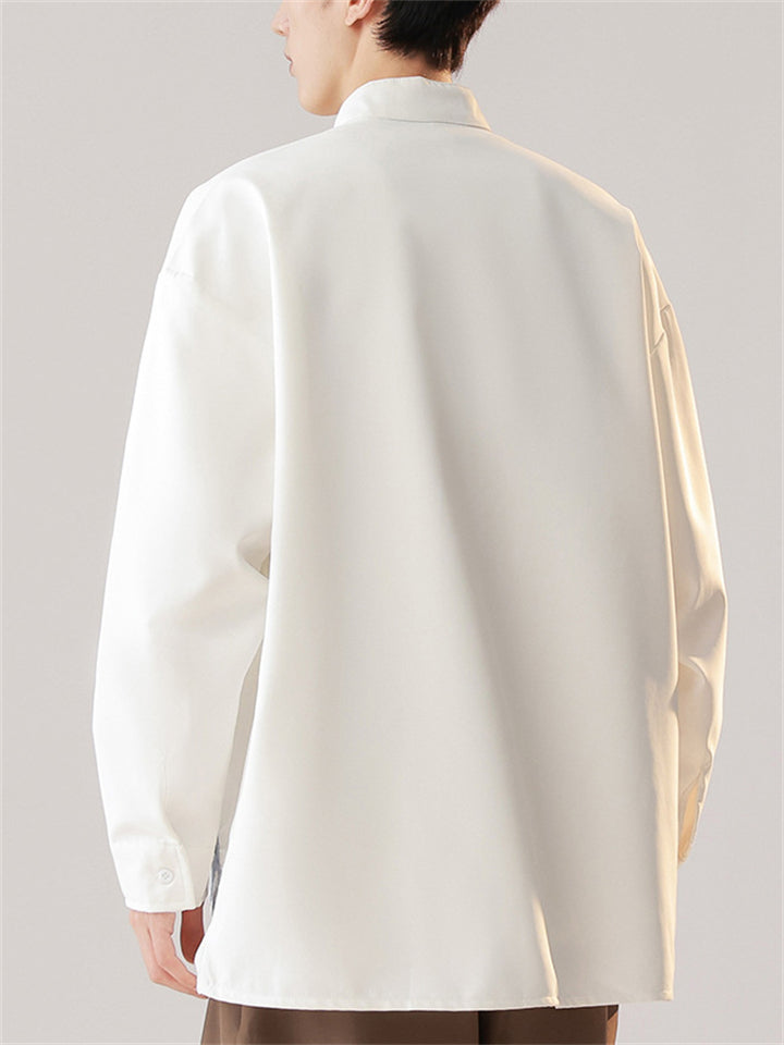 Men's Simple Chinese Style Ramine Stand Collar Tangsuit Shirts