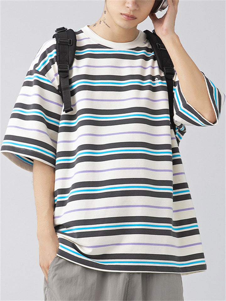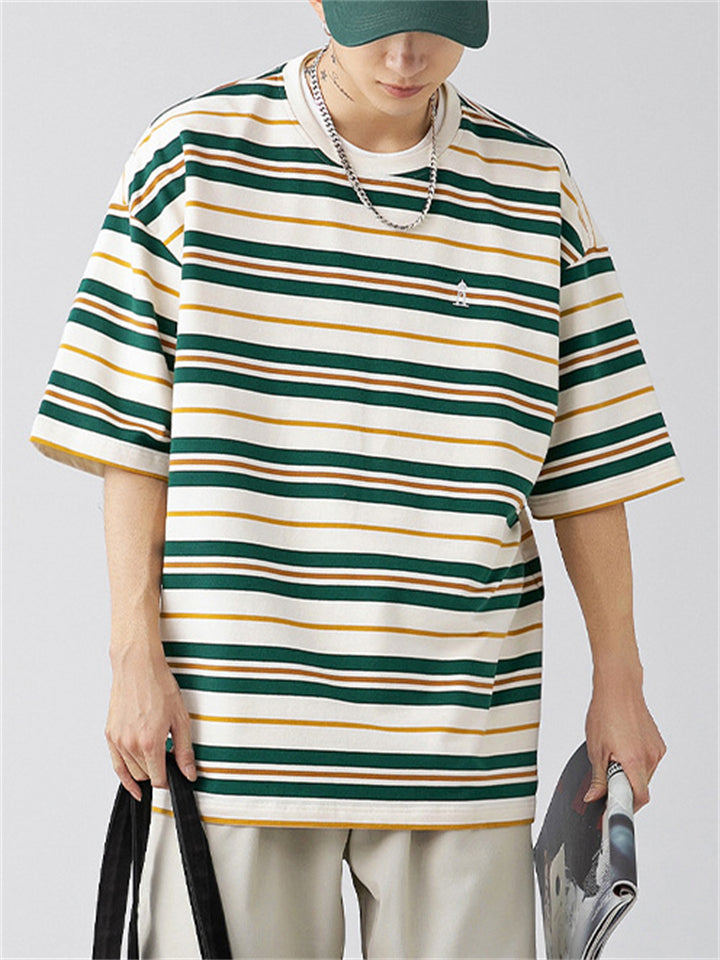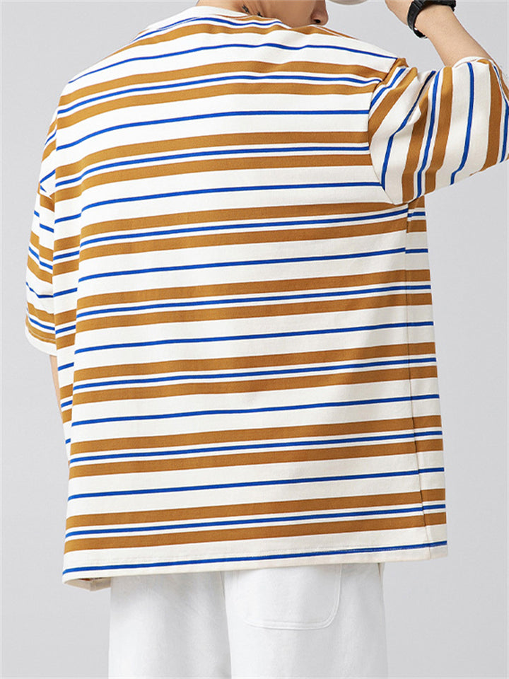 Men's Simple Solid Color Stand Collar Pullover Short Sleeve Shirts