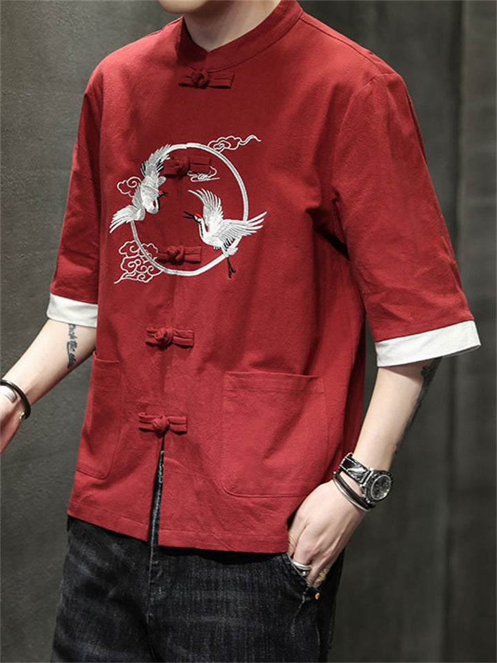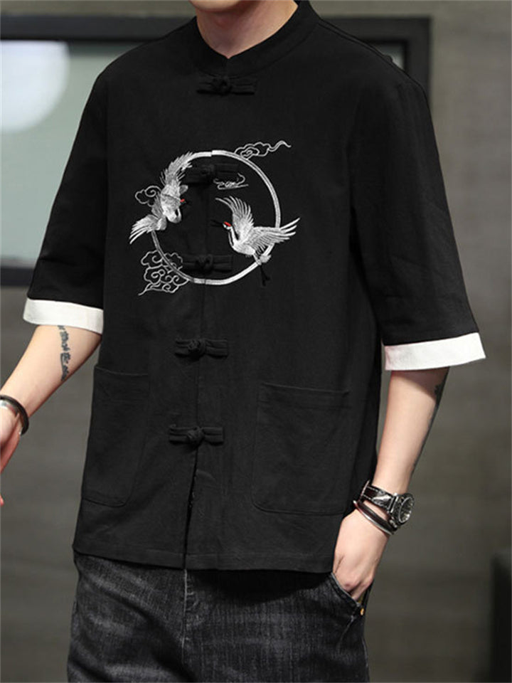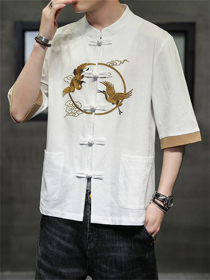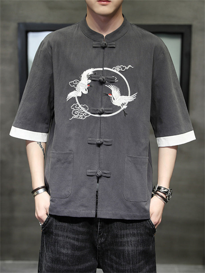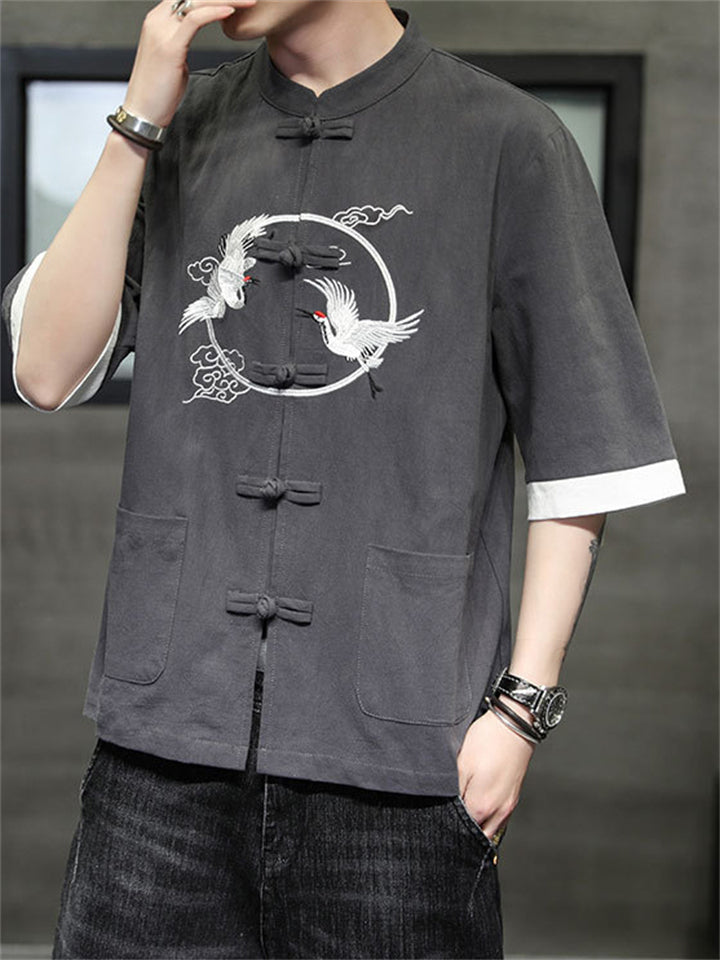 Men's Simple Chinese Style Ramine Stand Collar Tangsuit Shirts