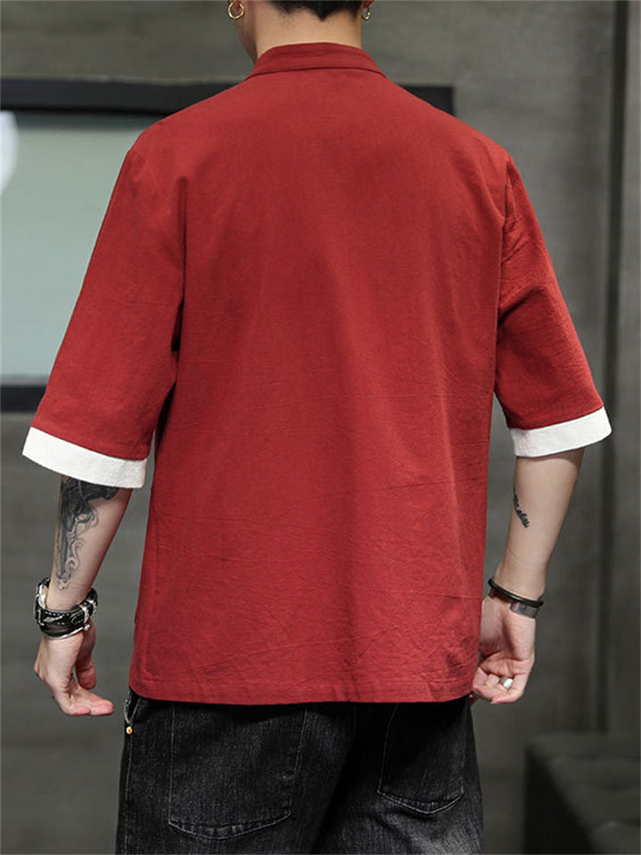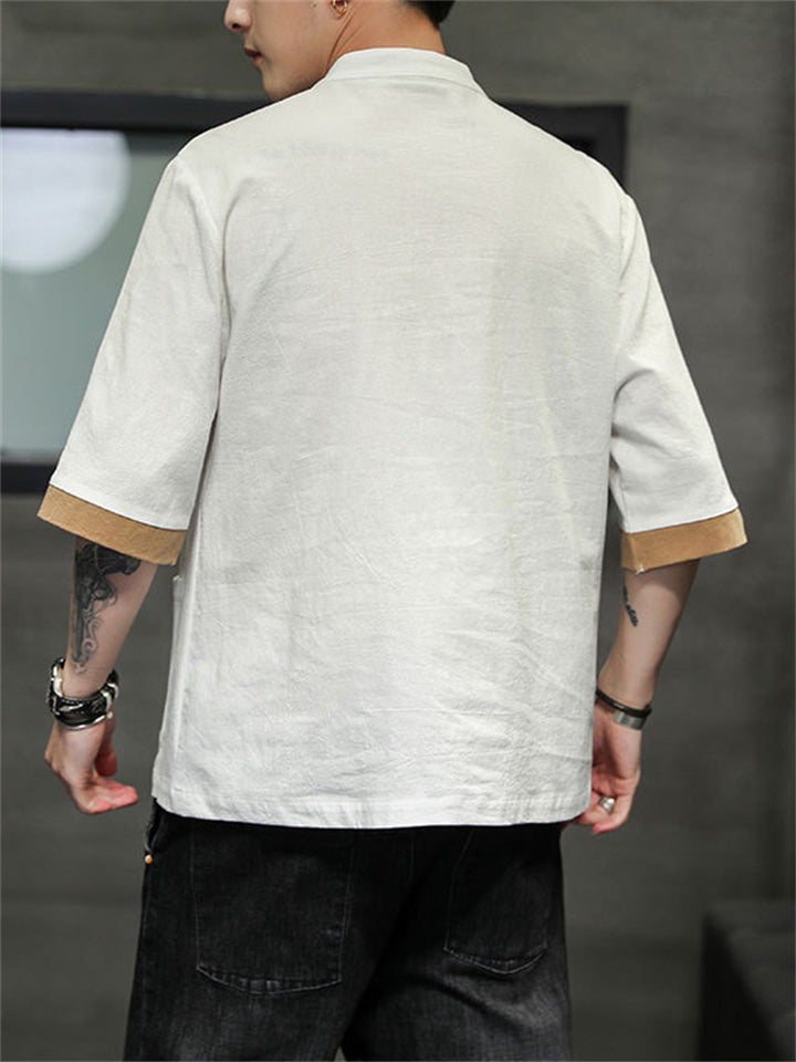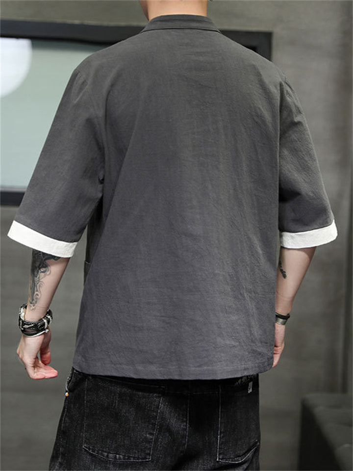 Men's Vintage Summer Solid Color 3/4 Sleeve Stand Collar Shirts