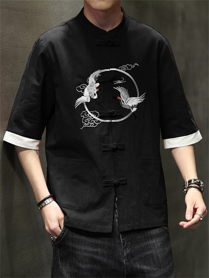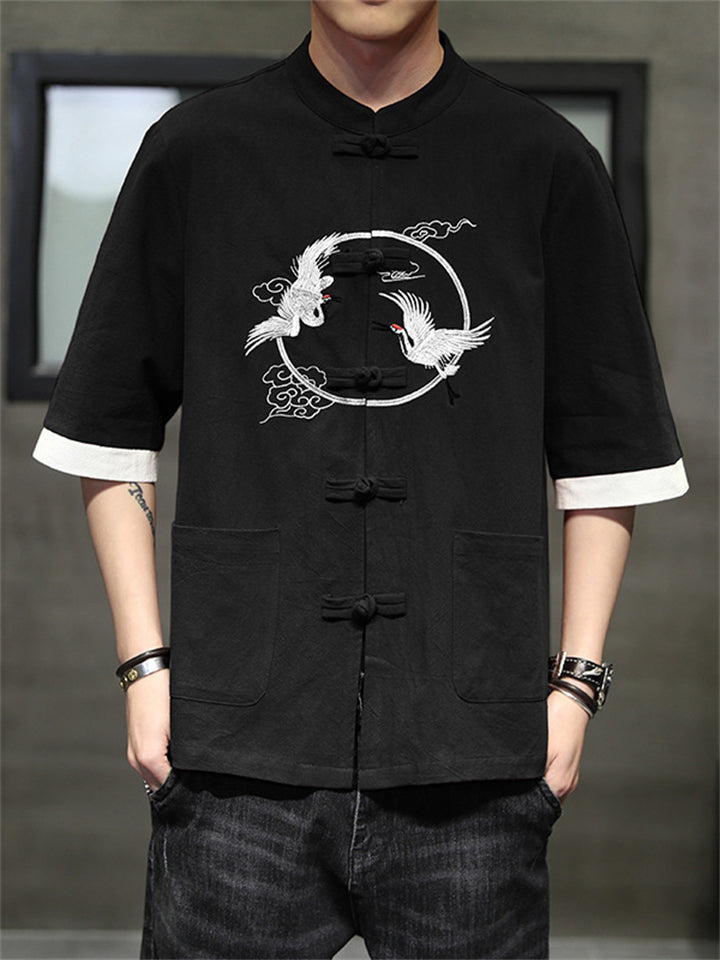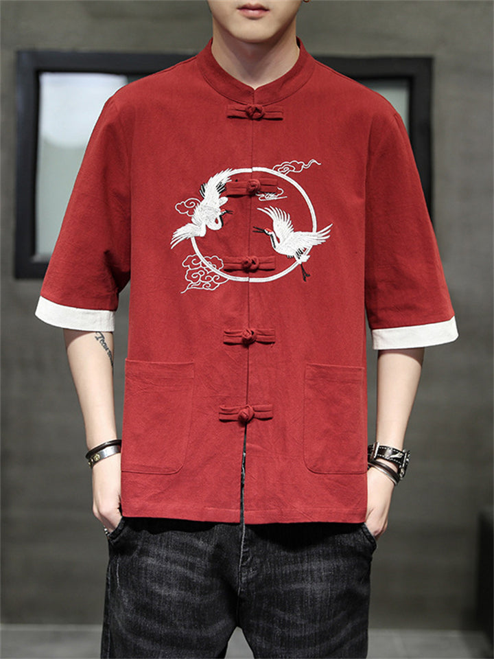 Men's Autumn Vintage Chinese Style Printed Frog Button Tangsuit Shirts