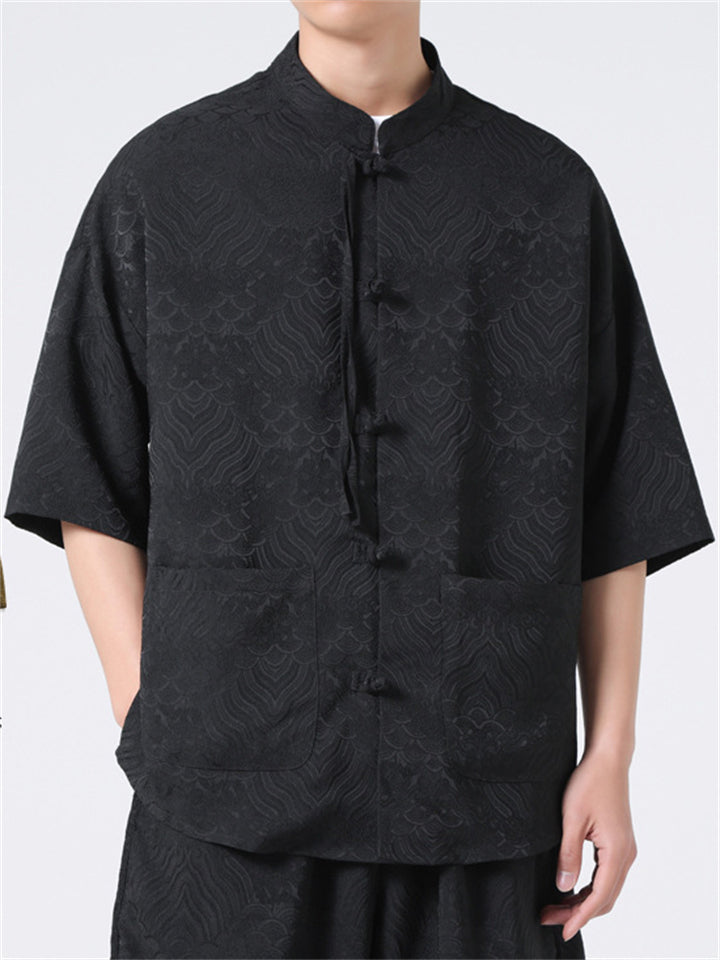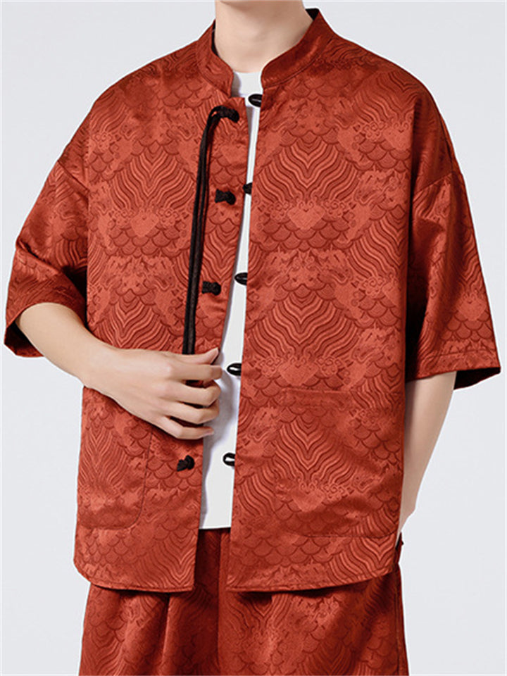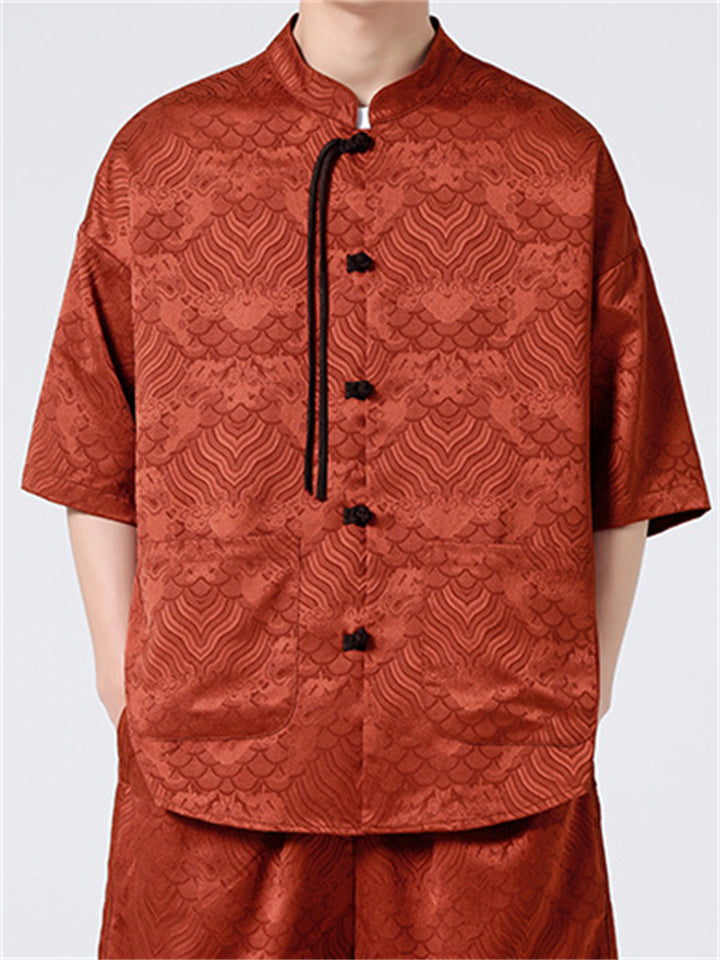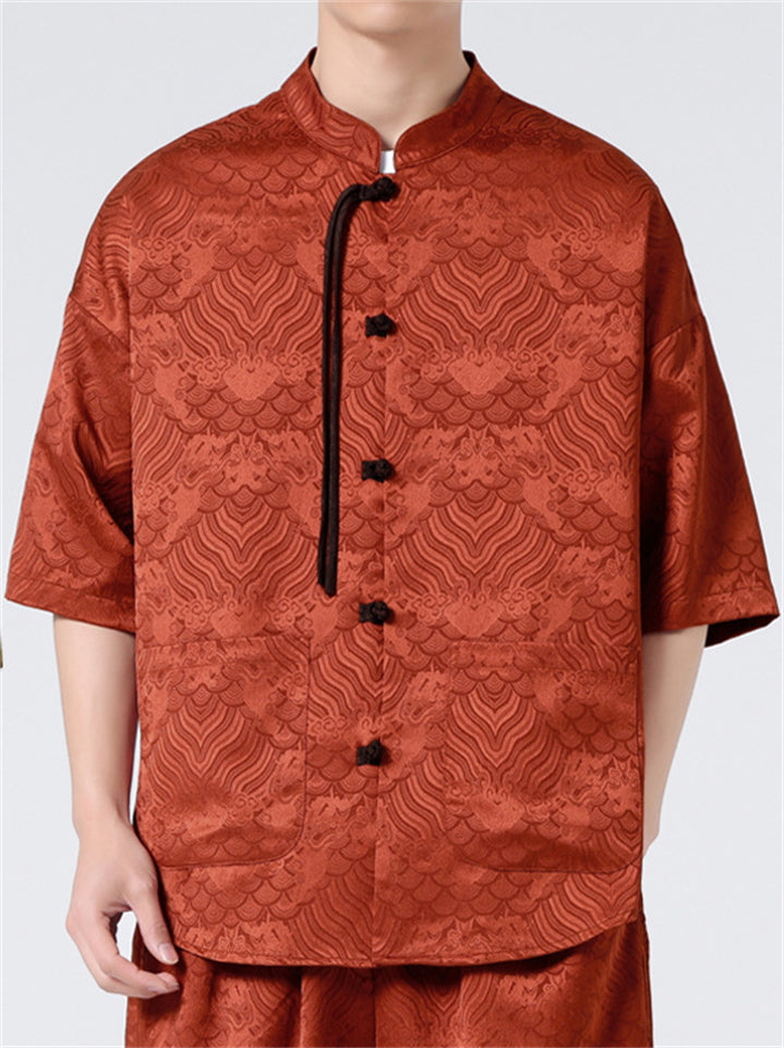Retro Chinese Style Loose Stand Collar Satin Shirts for Men